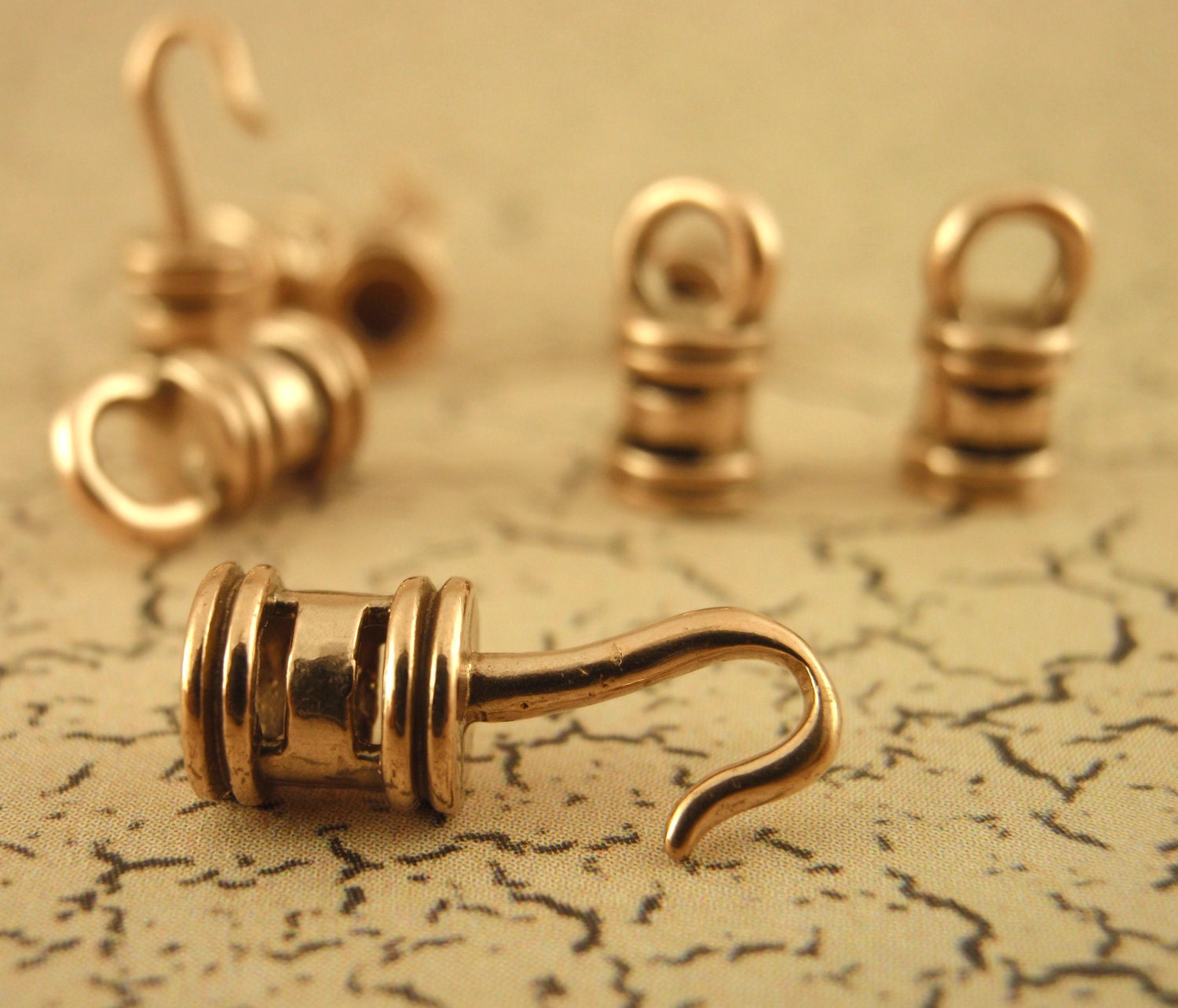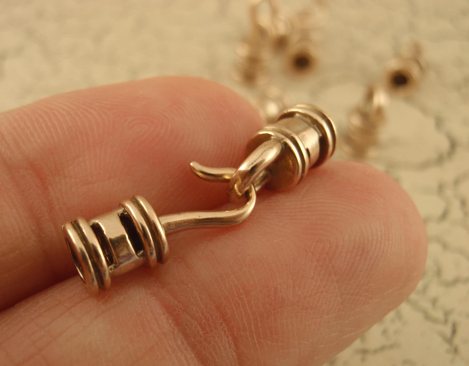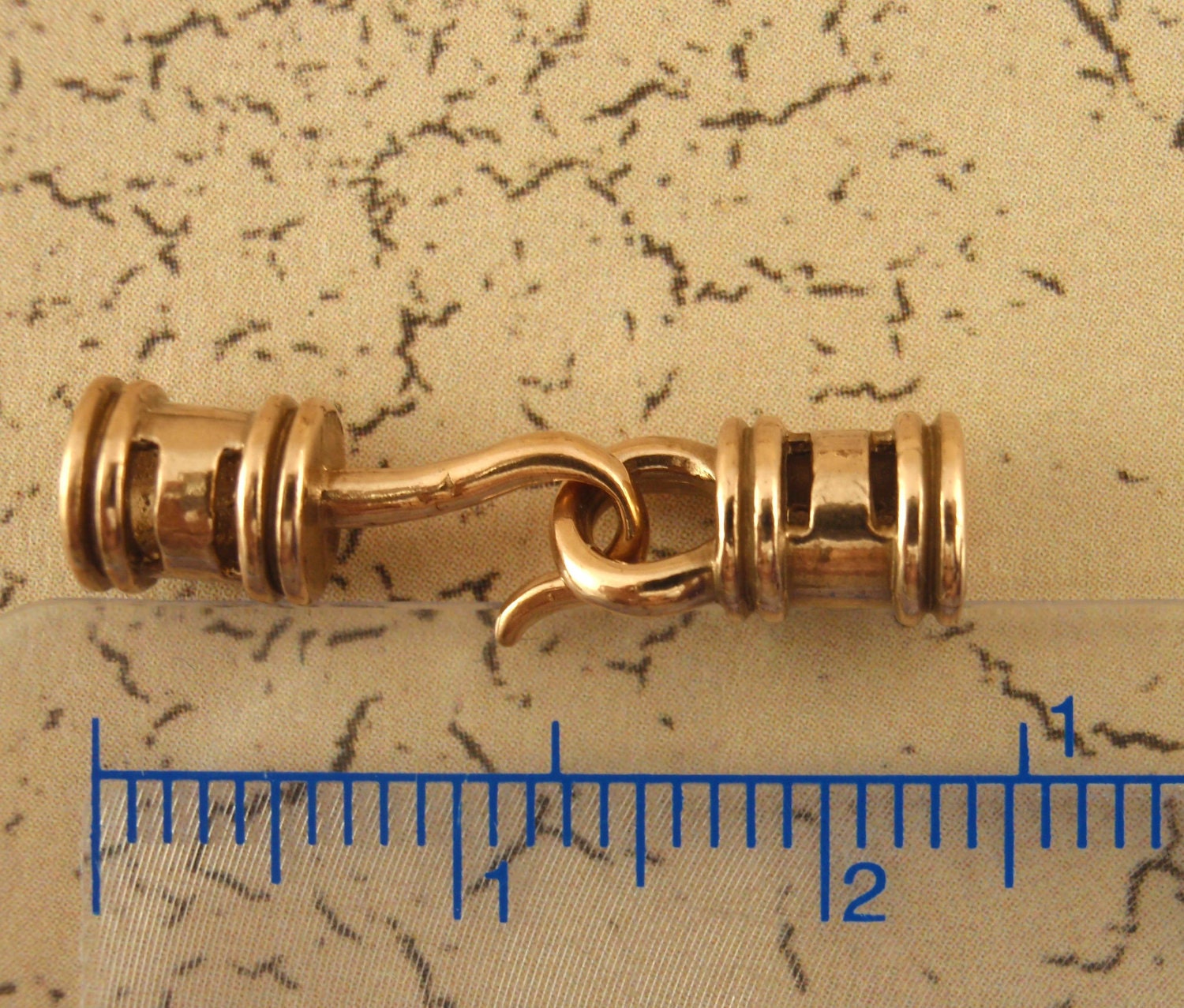 This set of solid bronze, copper or sterling silver cord crimp style hook and eye clasps is a great way to easily finish a necklace or bracelet. These will hold securely, never wear out and hold up to heavy use! To use, simple squeeze/crimp the center with your pliers. The opening is 3.2mm ID, the measure, overall, 25mm x 6mm.