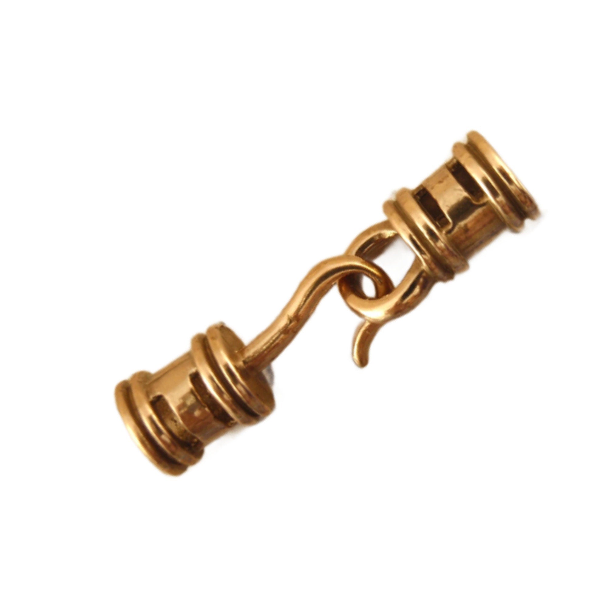 1 Set Bronze, Copper or Sterling Silver Cord Crimp Style Hook and Eye Clasp - 25mm X 6mm - Made in the USA