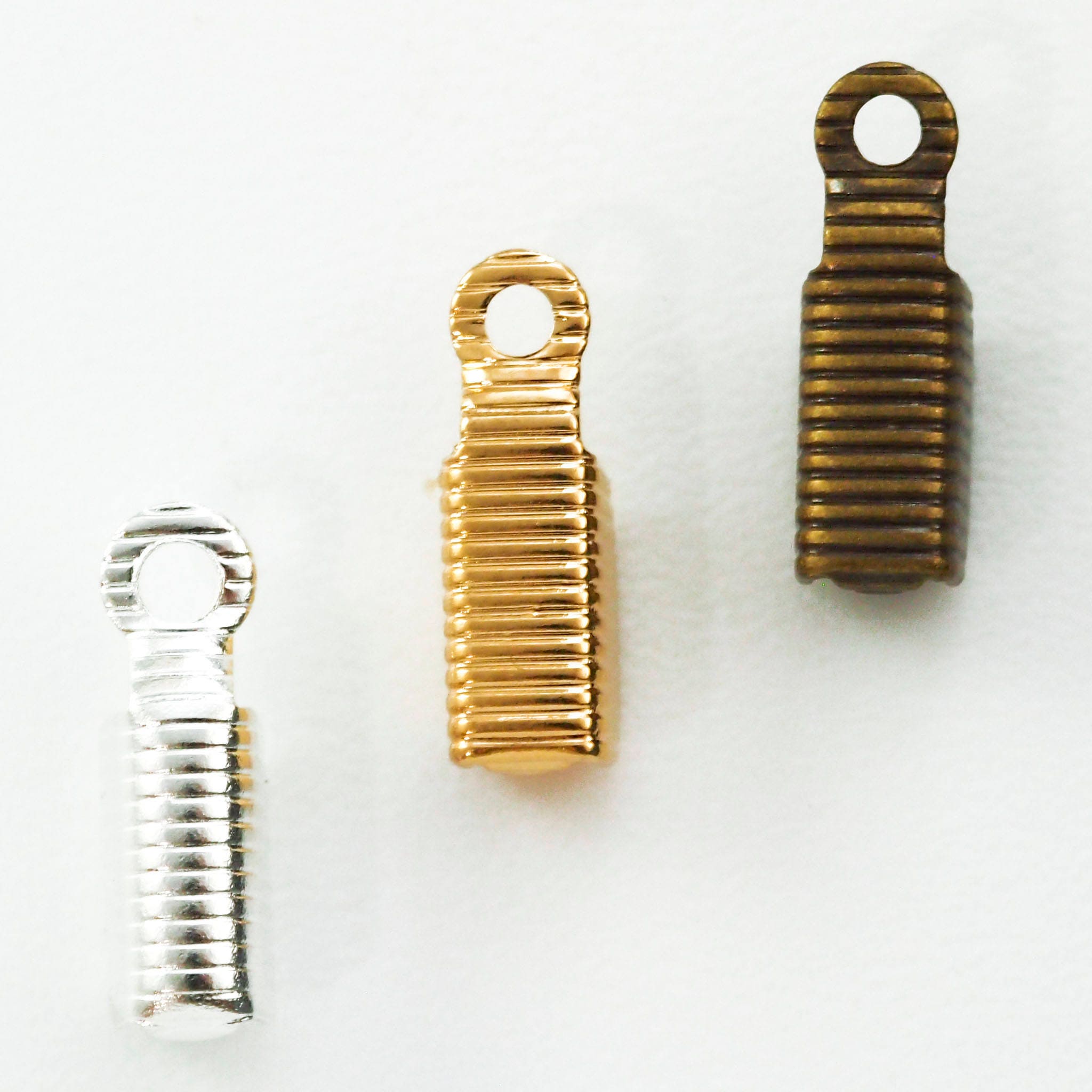 These 11mm X 3.5mm Corrugated Fold Over Cord Ends are a the perfect way to give your leather and cording creation a professional look! These cord ends are available in 3 finishes, are made from plated steel so are sturdy, are nickel and lead free and are a versatile size. They have a fold over surface of 3mm ID and the loop is 1.5mm ID. Each listing is for 30 cord end.