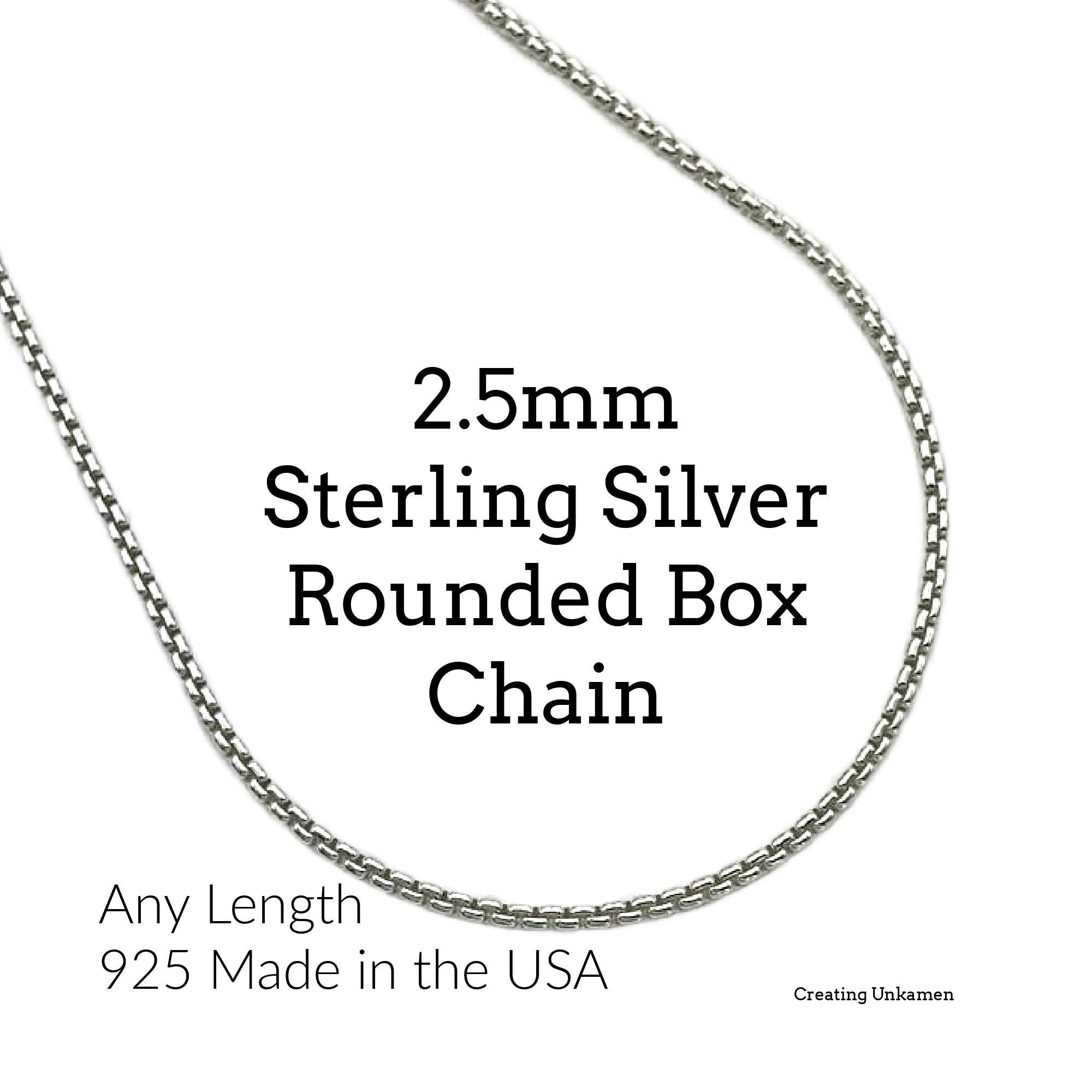Sterling Silver Rounded Box Chain 2.6mm Any Length Necklace or By The Foot - Made in the USA