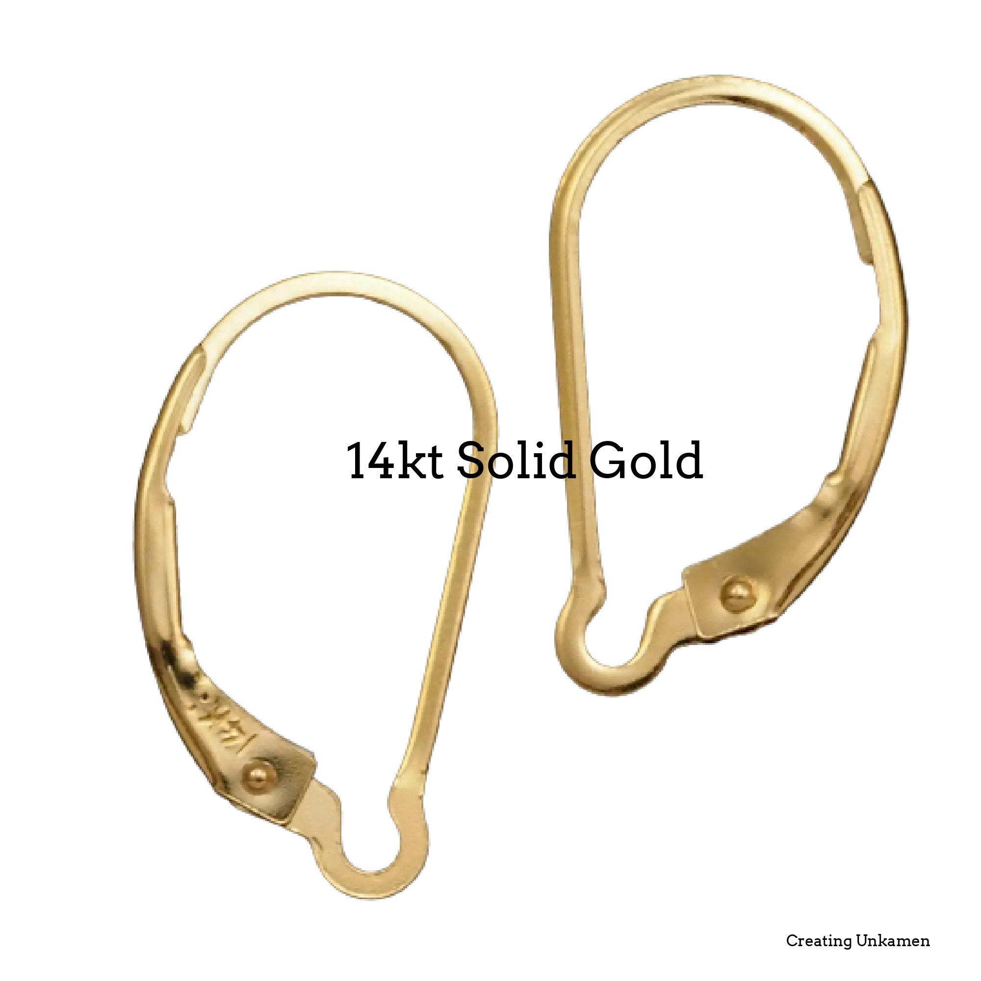 Ear Wires 1 Pair 14kt Solid Gold Leverback Interchangeable - Yellow or White