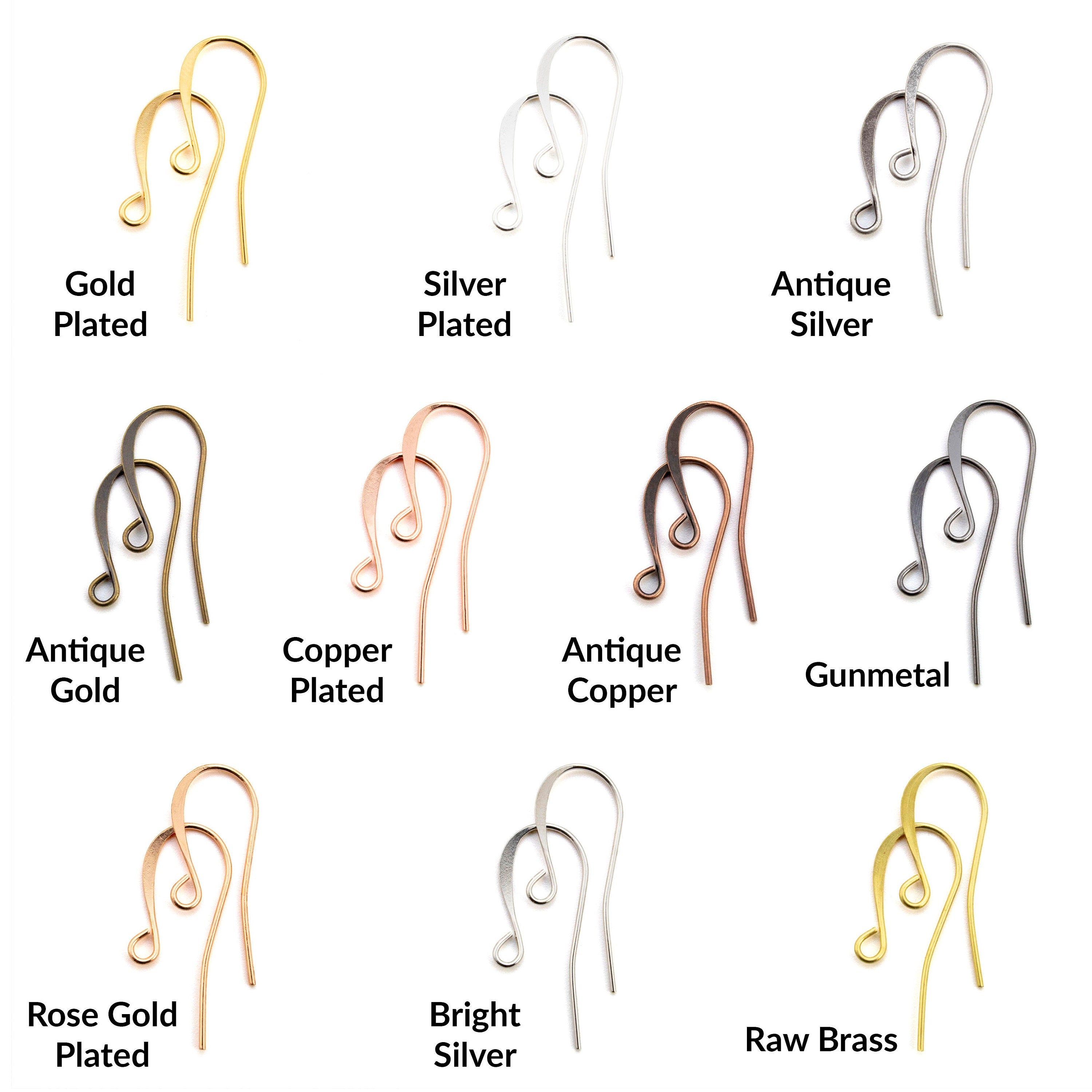 18 Pairs Slope Ear Wires - Gold, Silver, Rose Gold, Antique Silver, Antique Gold, Copper, Antique Copper, Gunmetal, Bright Silver, Steel