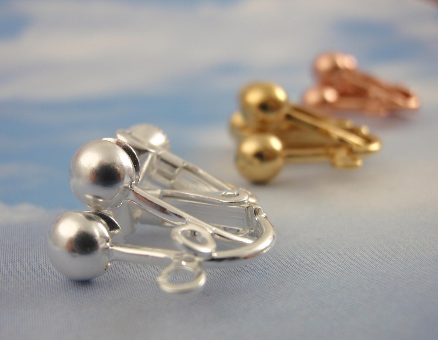 We never go to a craft show without a couple pairs of clip on earring findings!. There is always 1 or more customers without pierced ears and we are prepared to switch out any pair in our booth for them. These clip ons are the best! We carry these clip ons in 5 finishes, gold plate, silver plate, gunmetal, antique gold and copper plate, they are nicely made, affordable and because they are adjustable, they hold and feel comfortable.