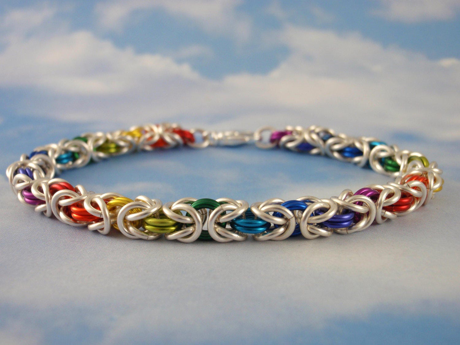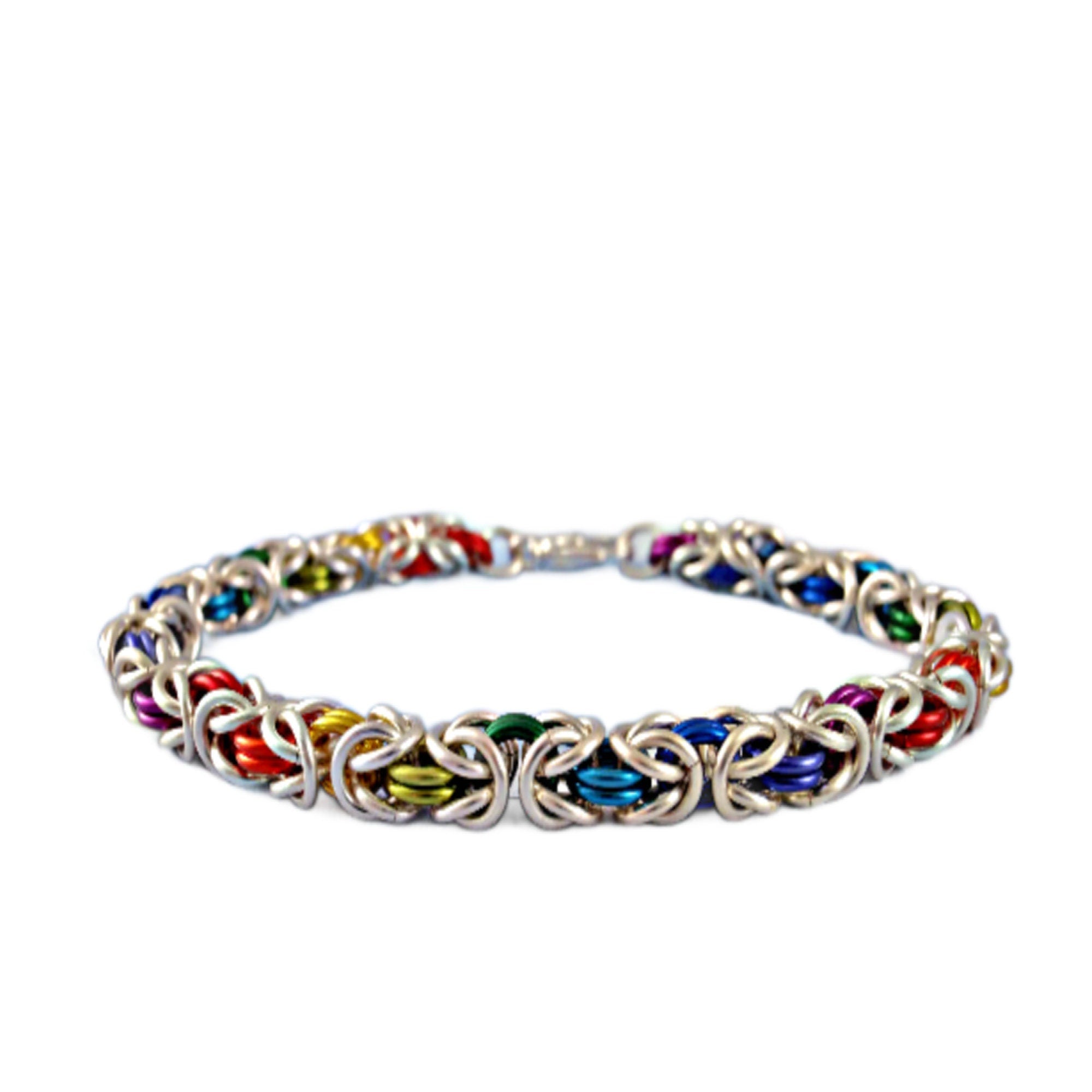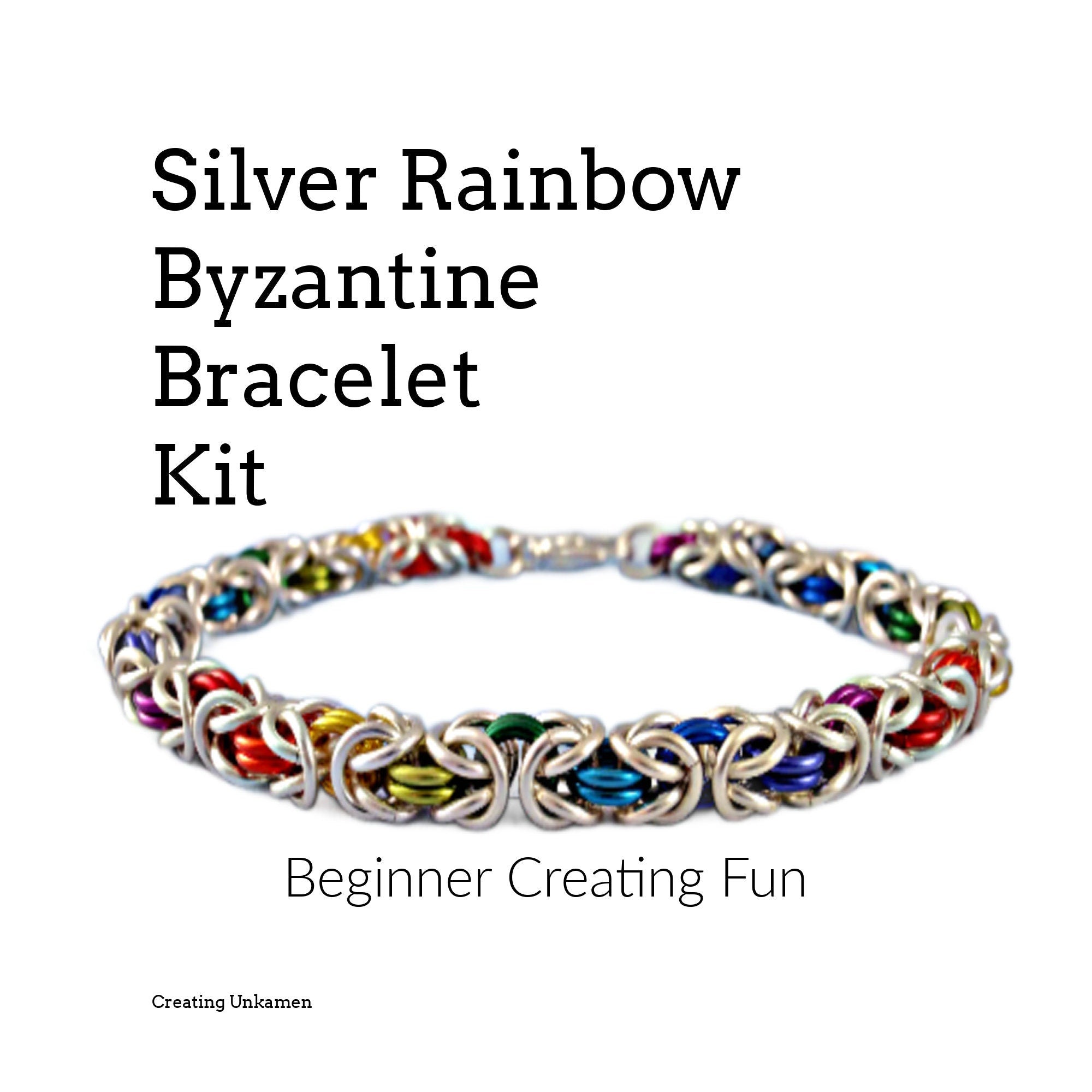 Bracelet Kit Silver Rainbow Byzantine Beginners Chainmaille - Pride Maille