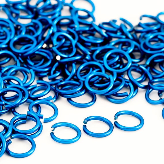 These Anodized Aluminum Jump Rings are perfect for a variety of weaves. These jump rings are made from Half Hard Aluminum Wire and they are perfect for light duty projects. These jump rings are available in 12 gauge AWG. These jump rings are anodized to a variety of colors and are ready for you to weave with them. They will not tarnish.