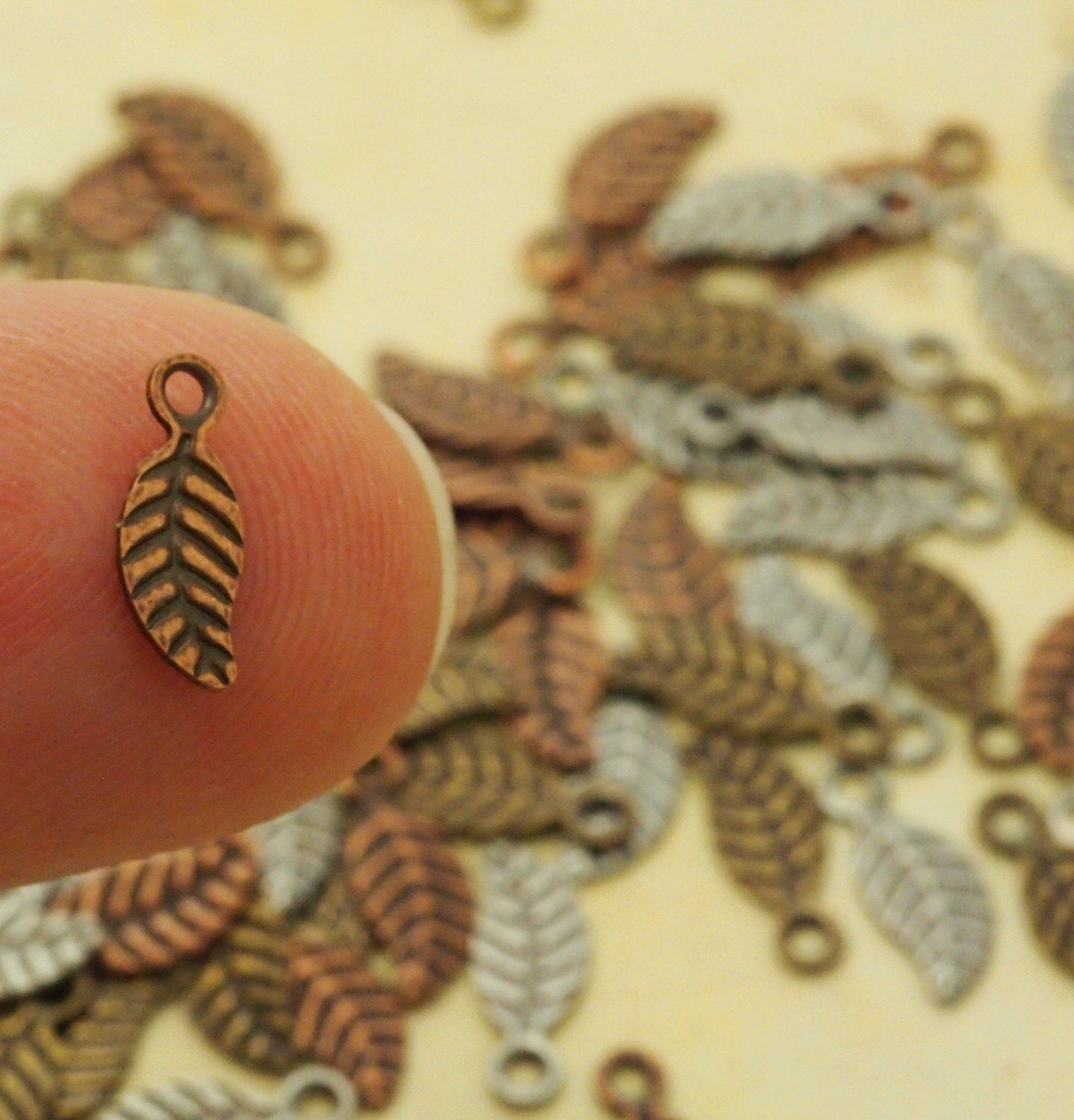 Charms 25 Mini Leaf Drops - Antique Copper, Antique Silver or Antique Gold 7mm X 3.5mm - 100% Guarantee