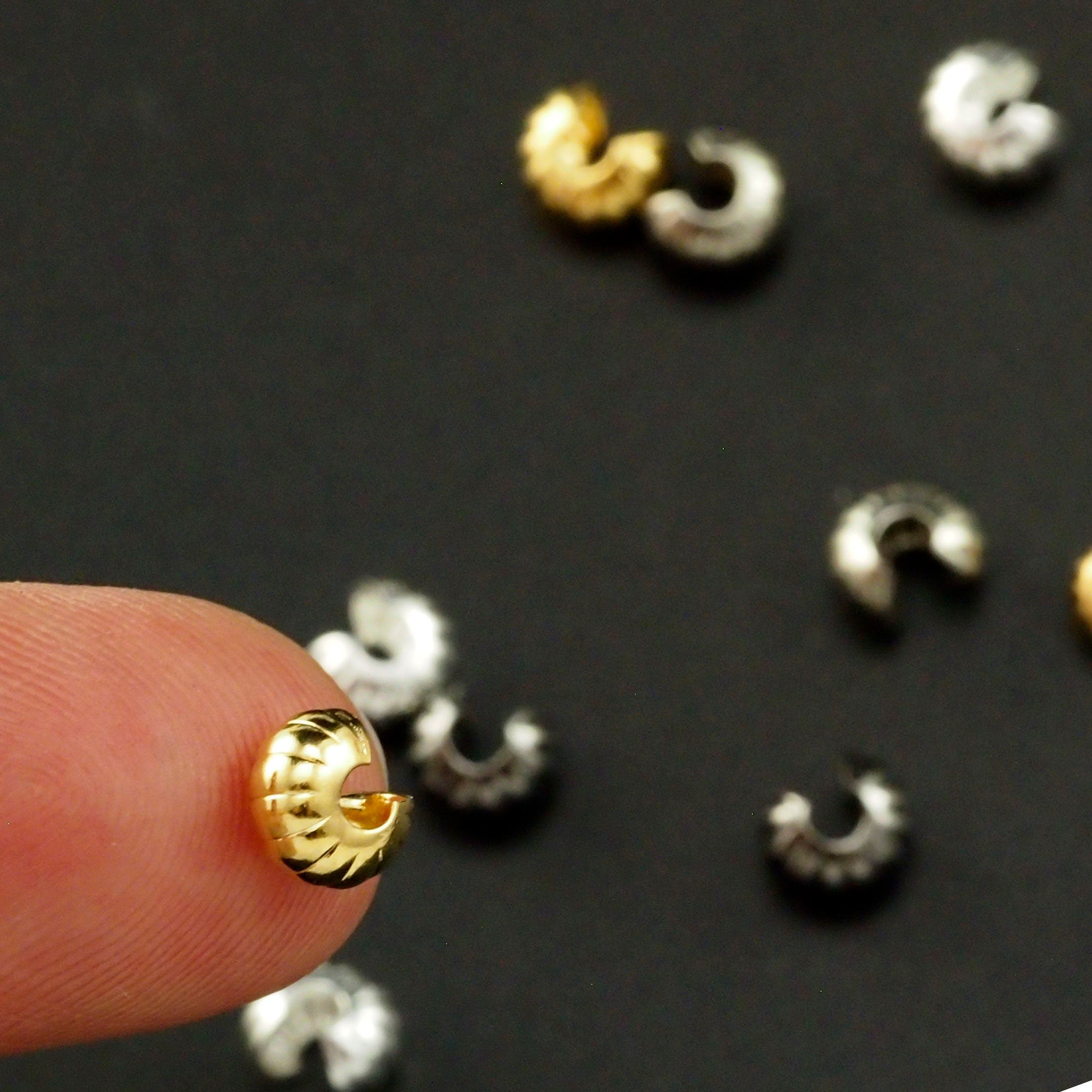 Materials: stainless steel crimp covers, plated brass crimp covers.