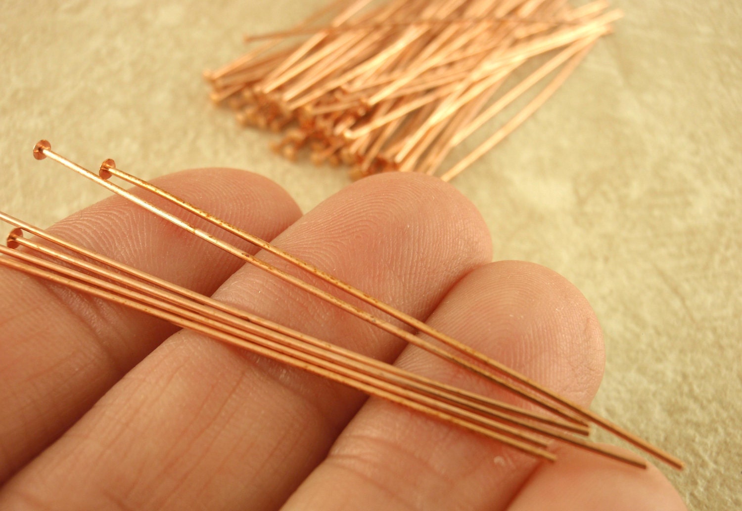 This shop sells the highest quality items. The copper headpins are well made and look great! Fast shipping.