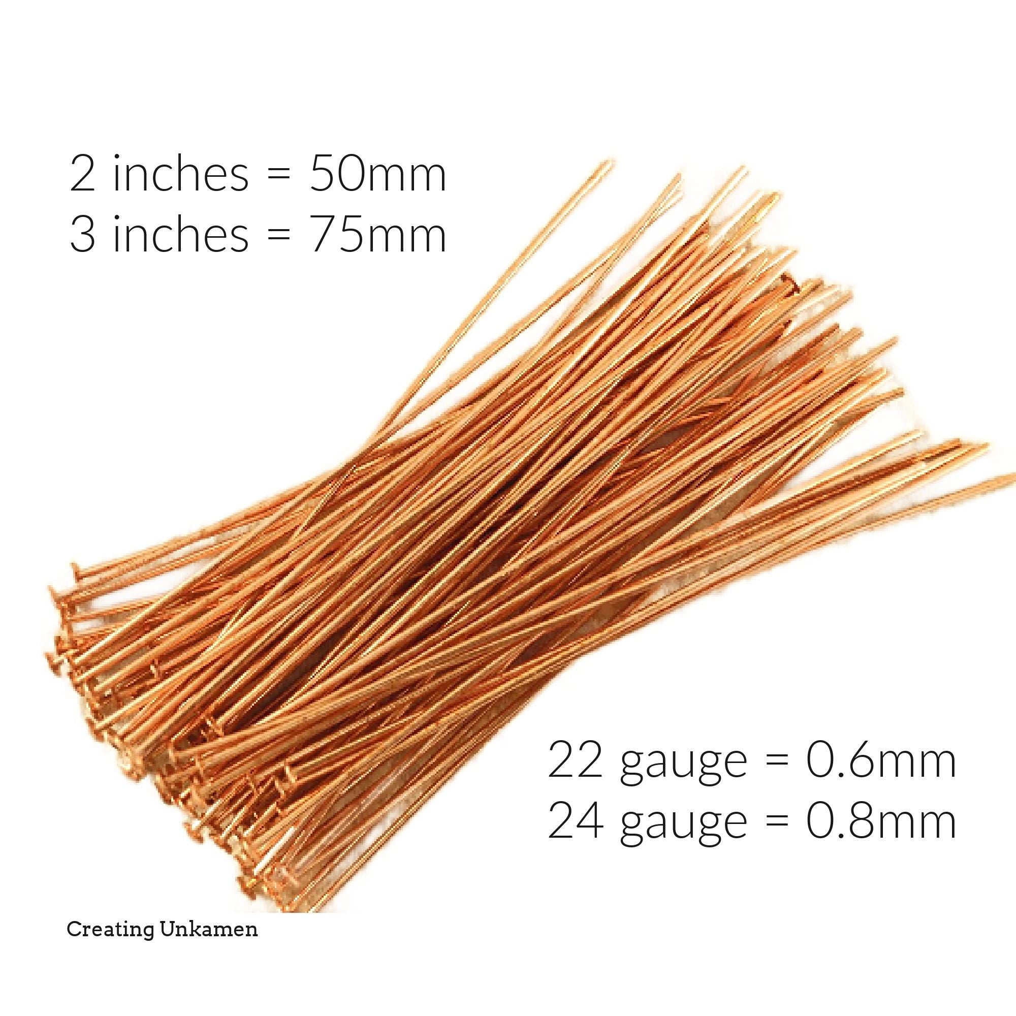 If any head pin can be stunning, these solid copper head pins are! These head pins will finish off your special jewelry creation perfectly. These head pins are made from 22 gauge or 24 gauge solid copper wire, in the USA and have a 2mm head. Choose from Natural, shiny penny bright, or Antique, medium brown with reddish hints, which is the result of a hand applied patina. These head pins will also arrive almost perfectly straight! Each listing is for 50 head pins.