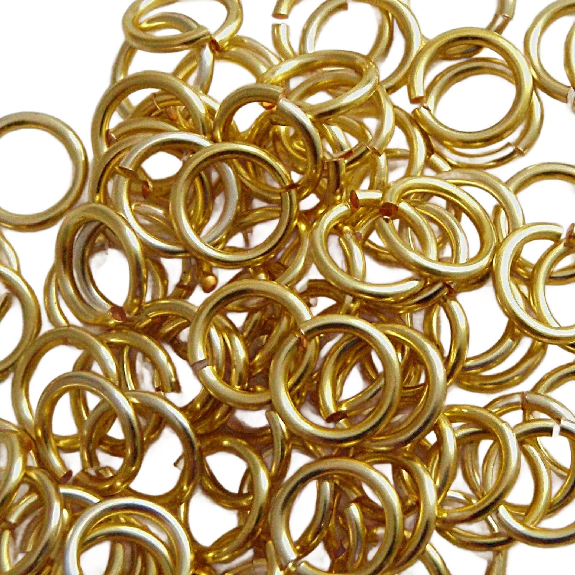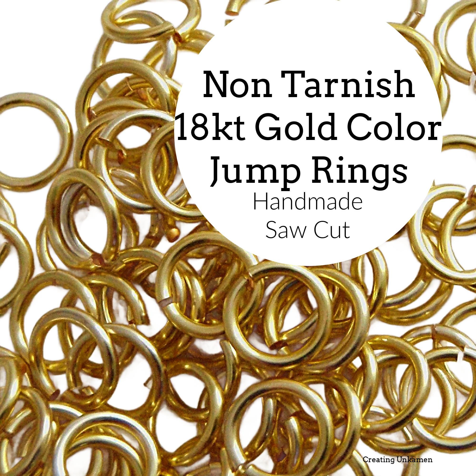 These handmade non-tarnishing 18kt Gold Colored jump rings in your pick of Gauge (12, 14, 16, 18, 20, 22, 24) and ID (inside diameter) are perfect for chainmaille artisans and all jewelry artisans who are looking for something better than what is available commercially! They have a medium dark gold tone, like 18kt gold, but do not contain any gold.