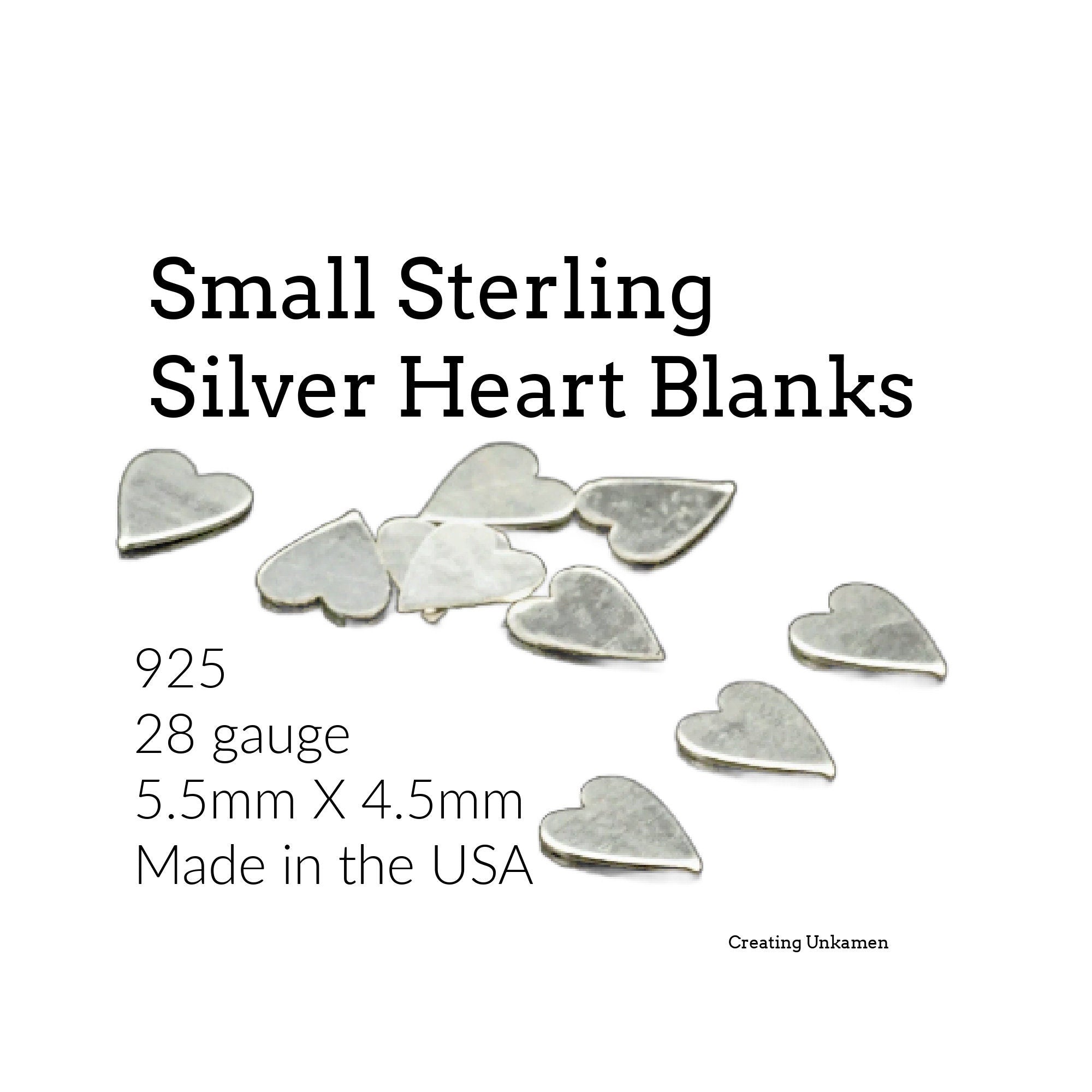These Small Sterling Silver Hearts can be used in a variety of special creations! These hearts are made in the USA from 925 Sterling Silver and measure 5.5mm X 4.5mm, 28 gauge in thickness. This listing is for 5 hearts.