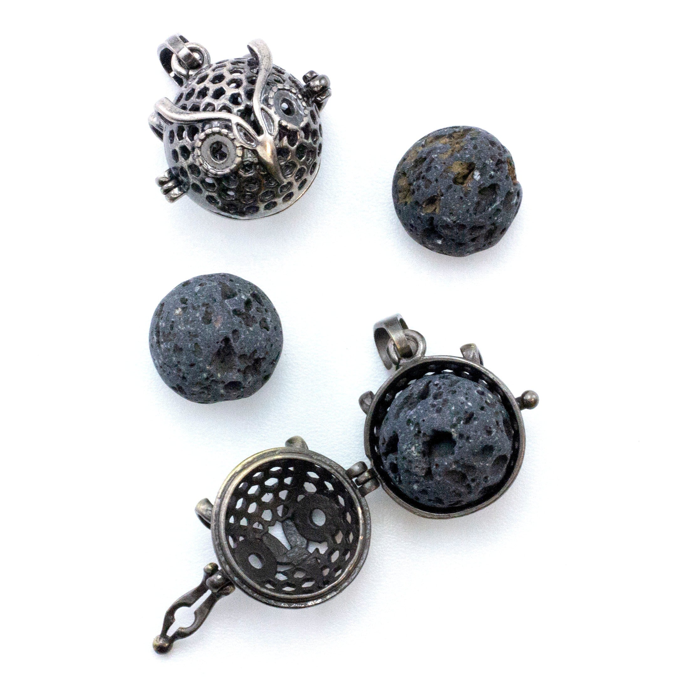 Owl Aromatherapy Locket in Antique Brass with Free Lava Rock