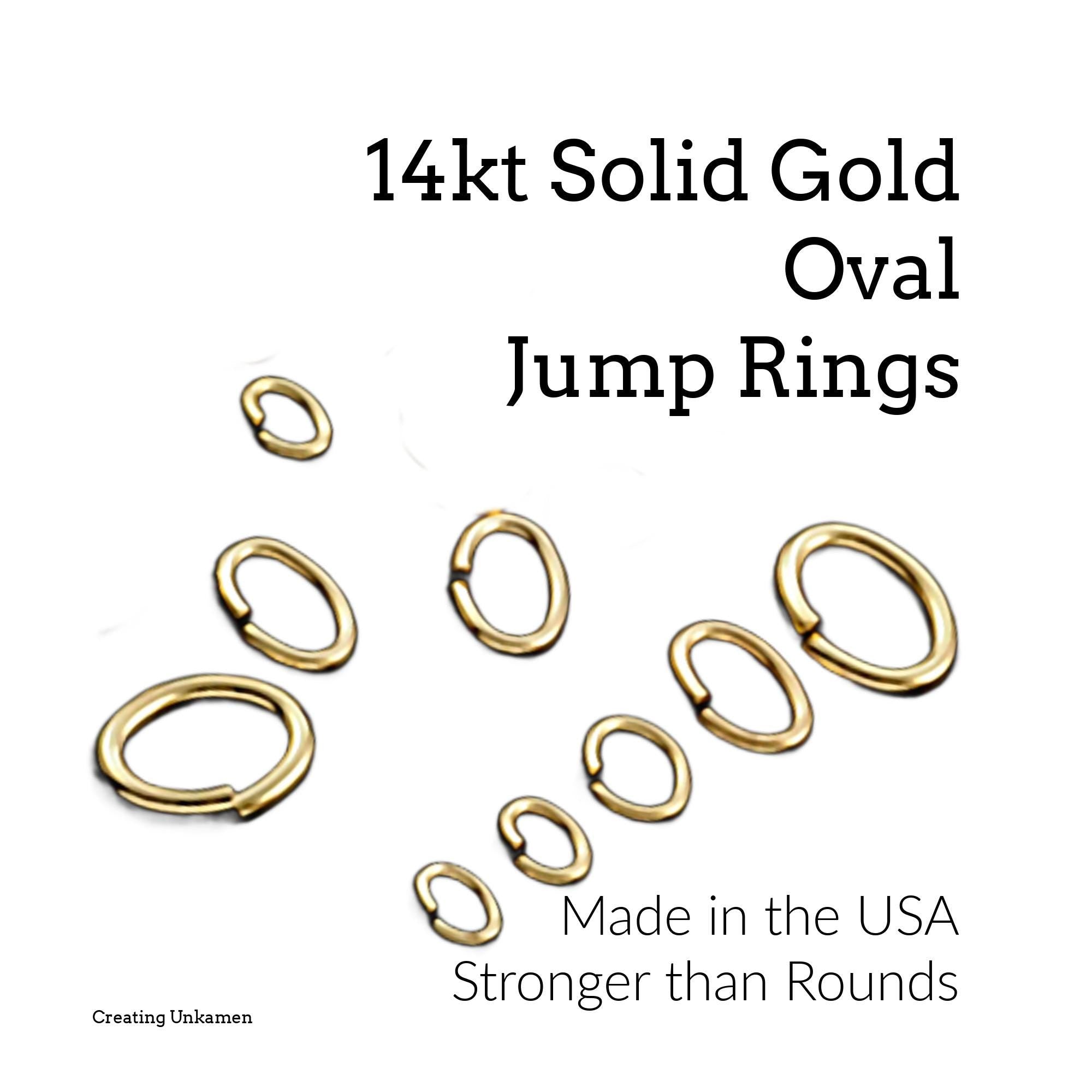 Our 14kt Solid Gold Oval Jump Rings are perfect for jewelry repairs, attaching a clasp or dangling a charm! They are solid gold - nothing plated or coated, are available in 8 sizes and are Made in the USA. Each listing is for 1 jump ring.