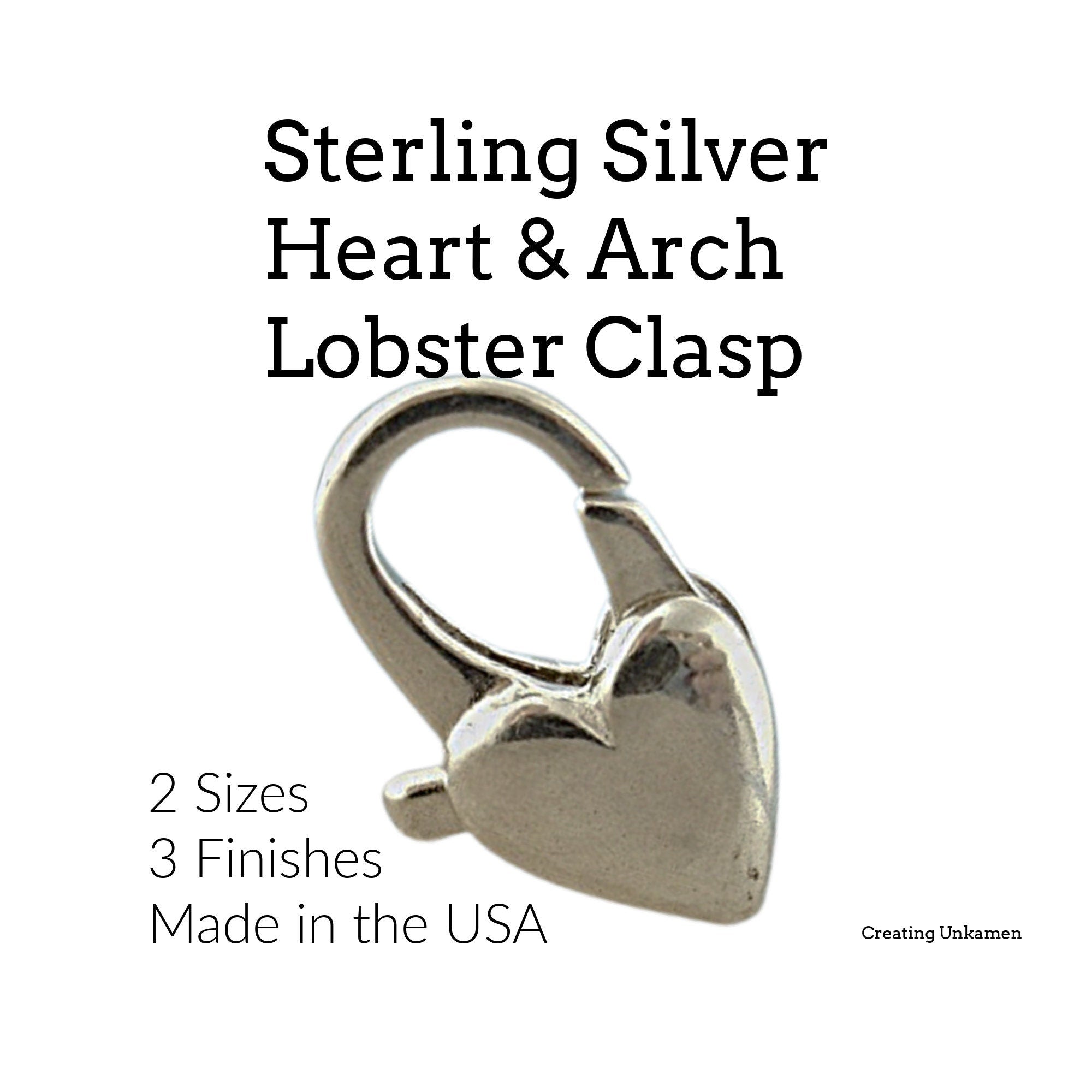1 Sterling Silver Heart and Arch Lobster Clasp 11mm or 13mm Made in the USA