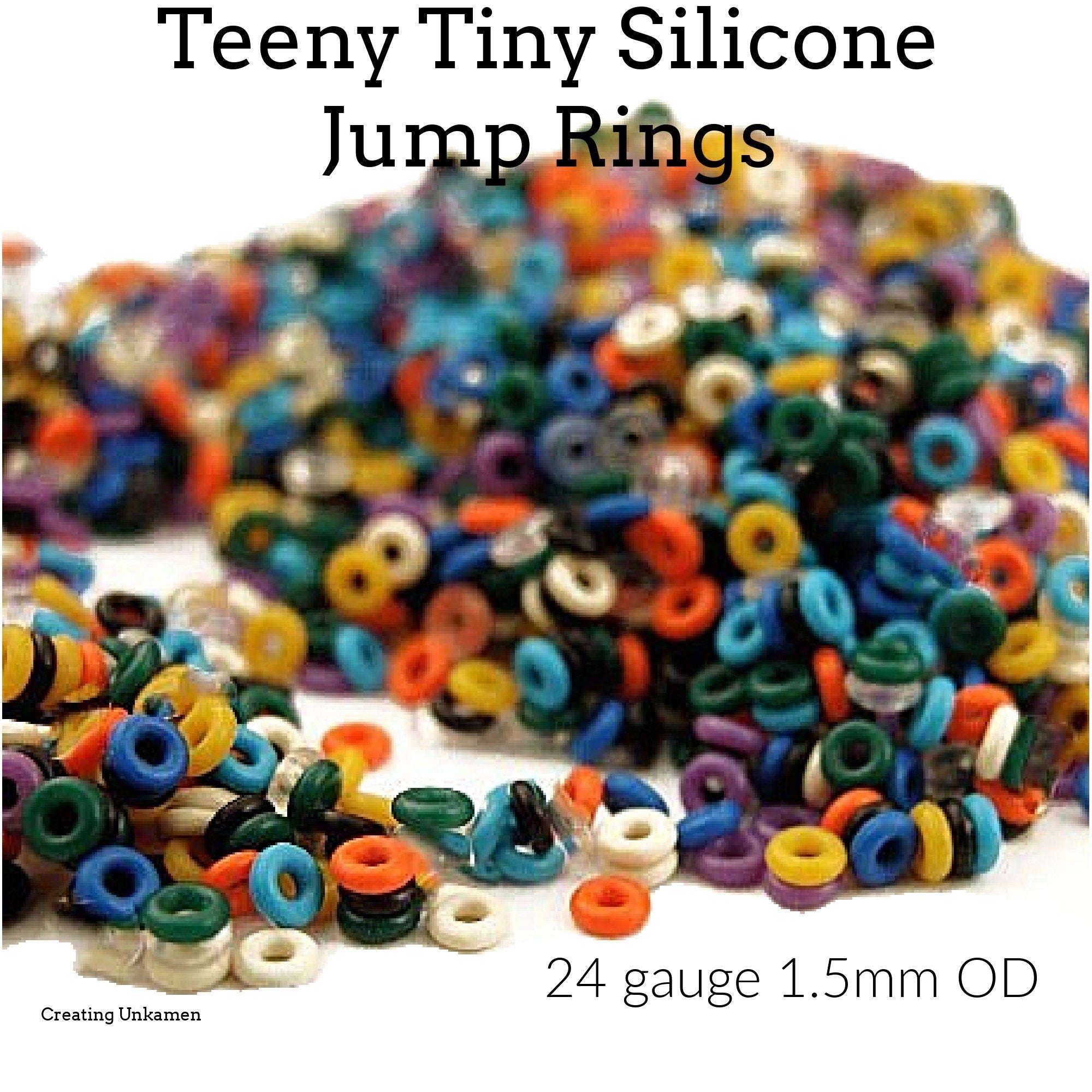 1000 Silicone Jump Rings 24 gauge 1.5mm OD - Teeny Tiny Red, Yellow, Brown, Blue, Pink, Black, Orange, Purple, Green, Clear