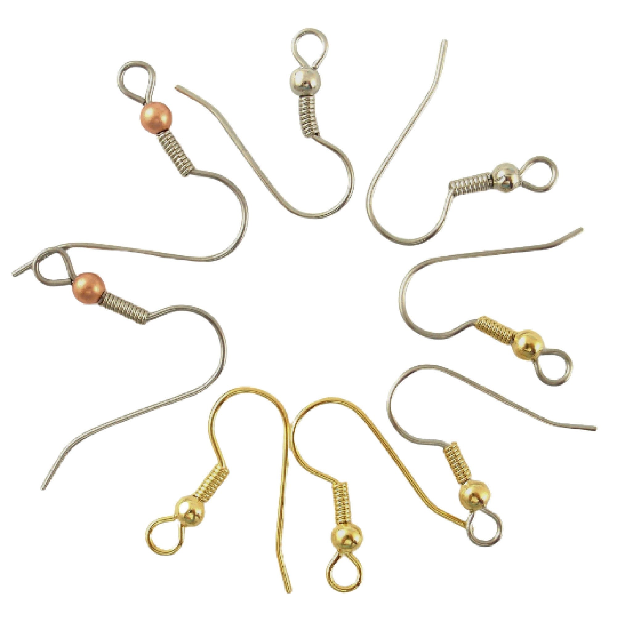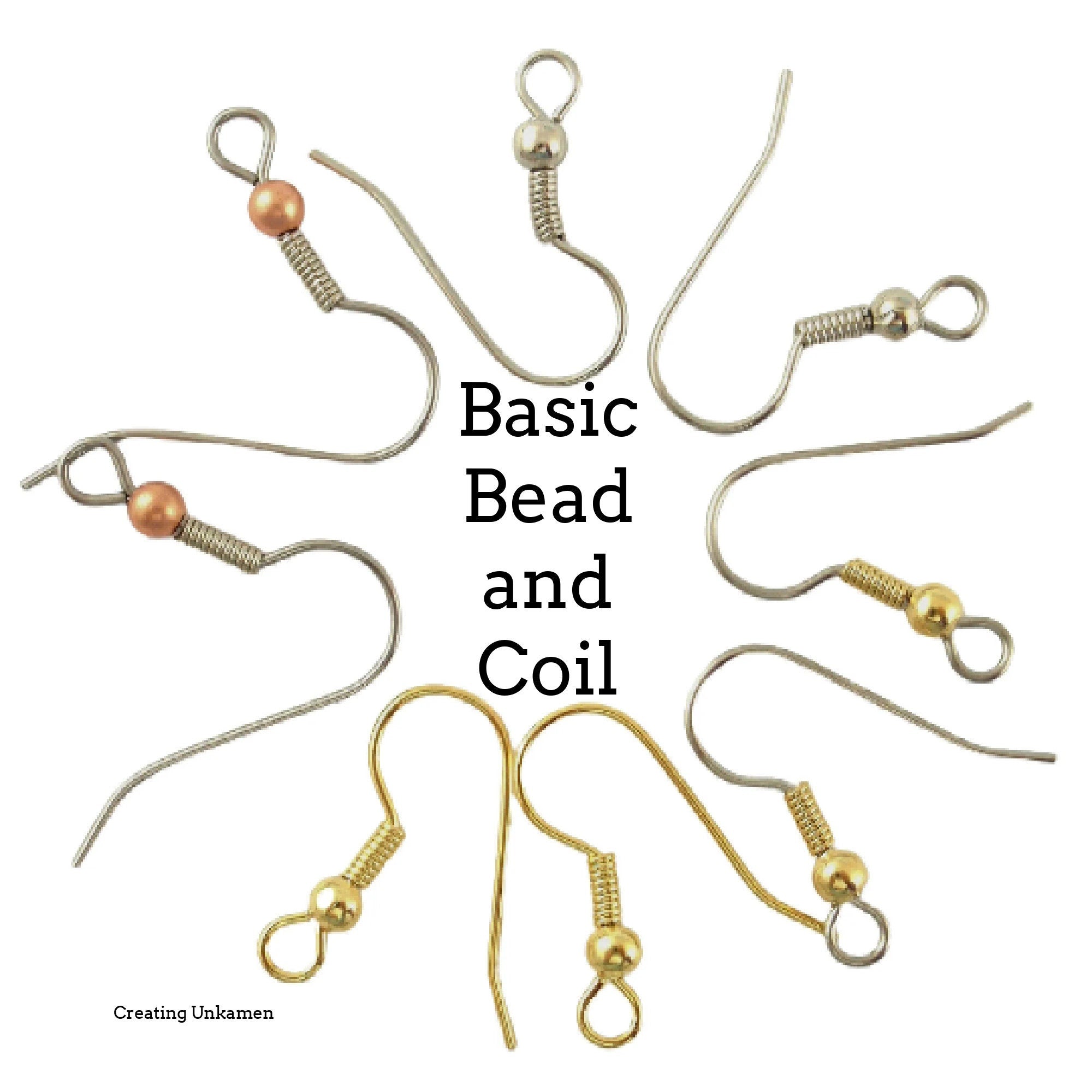 20 pairs - Basic Bead and Coil Ear Wires in Stainless Steel, Silver Plate, Gold Plate, Copper - 100% Guarantee