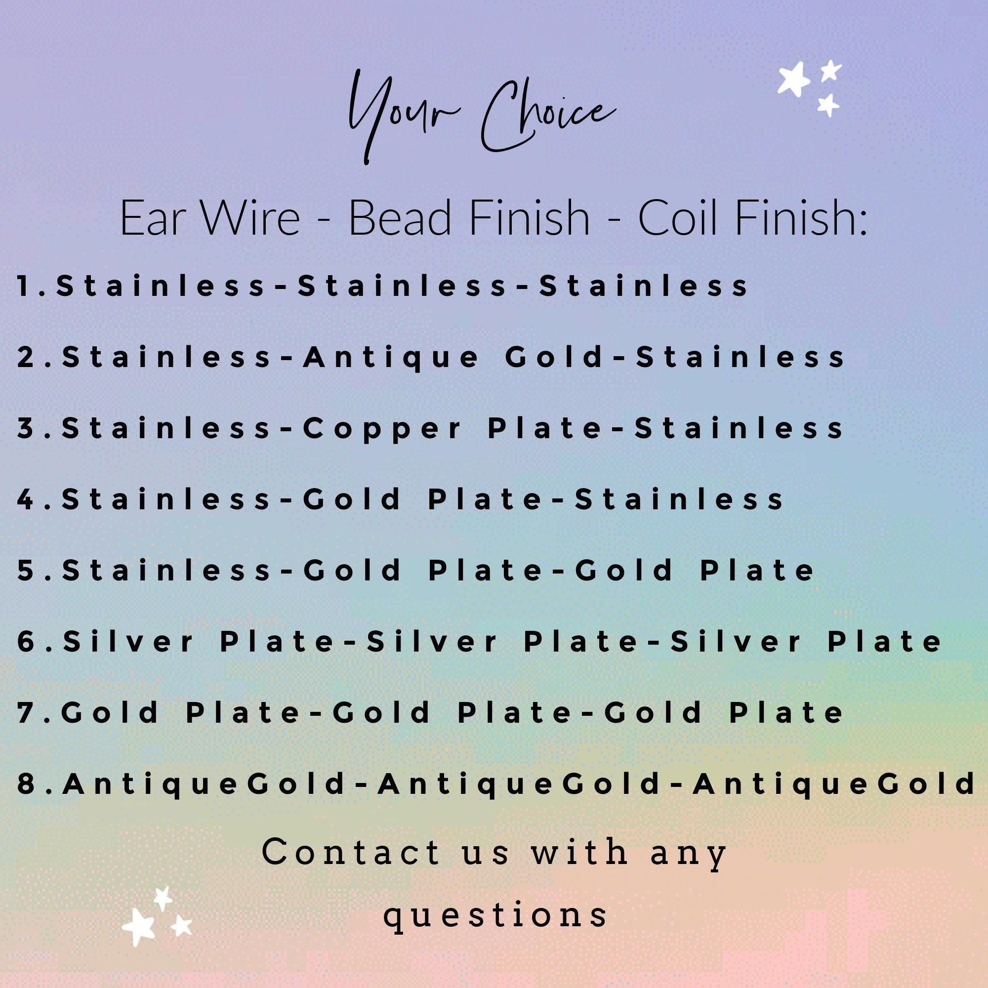 These Basic Bead and Coil Ear Wires are perfect for your every day earring creations! The base metal is surgical steel, regardless of the finish, the ends are smooth. these ear wires are made from 21 gauge wire, the ball measures 3mm, the coil 4mm. Choose your ear wires to be all one finish or a mix! Each listing is for 20 pairs of ear wires or buy in bulk and save!