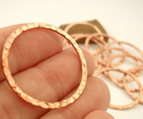 6 Hammered Round Link Components - 30mm - Silver Plate, Gold Plate, Antique Gold, Copper, Antique Copper