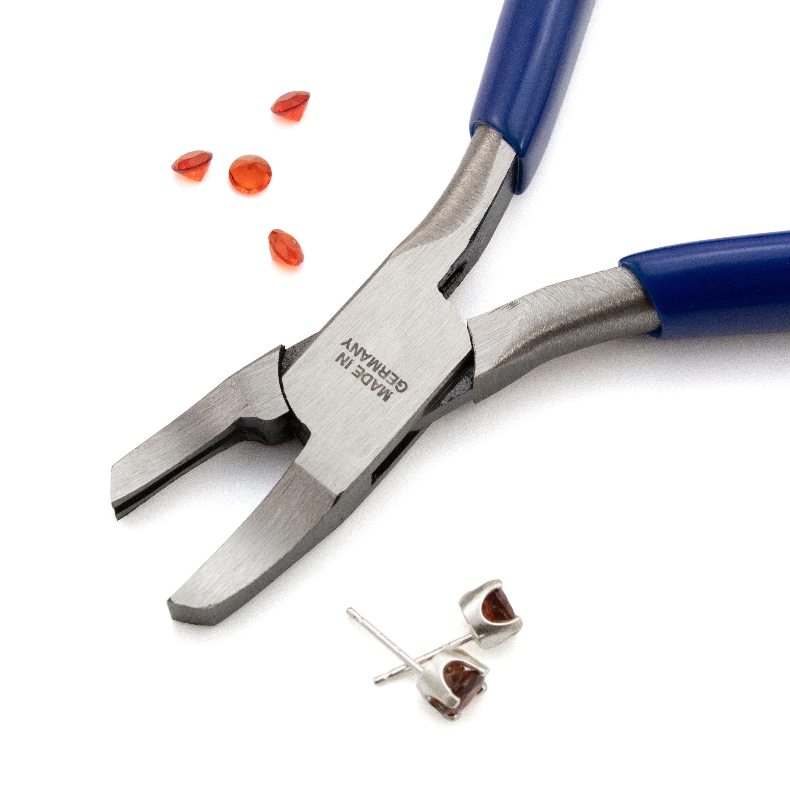 We are frequently asked to recommend pliers for jewelry artisans working with stones and settings... These are it! These feature one smooth jaw and one notched jaw which are perfect for bending and tightening prongs. You can better control the pressure, reducing the risk of slipping and damaging the stone. They're also Made in Germany, and feature highly polished fine jaws to access tight spots.