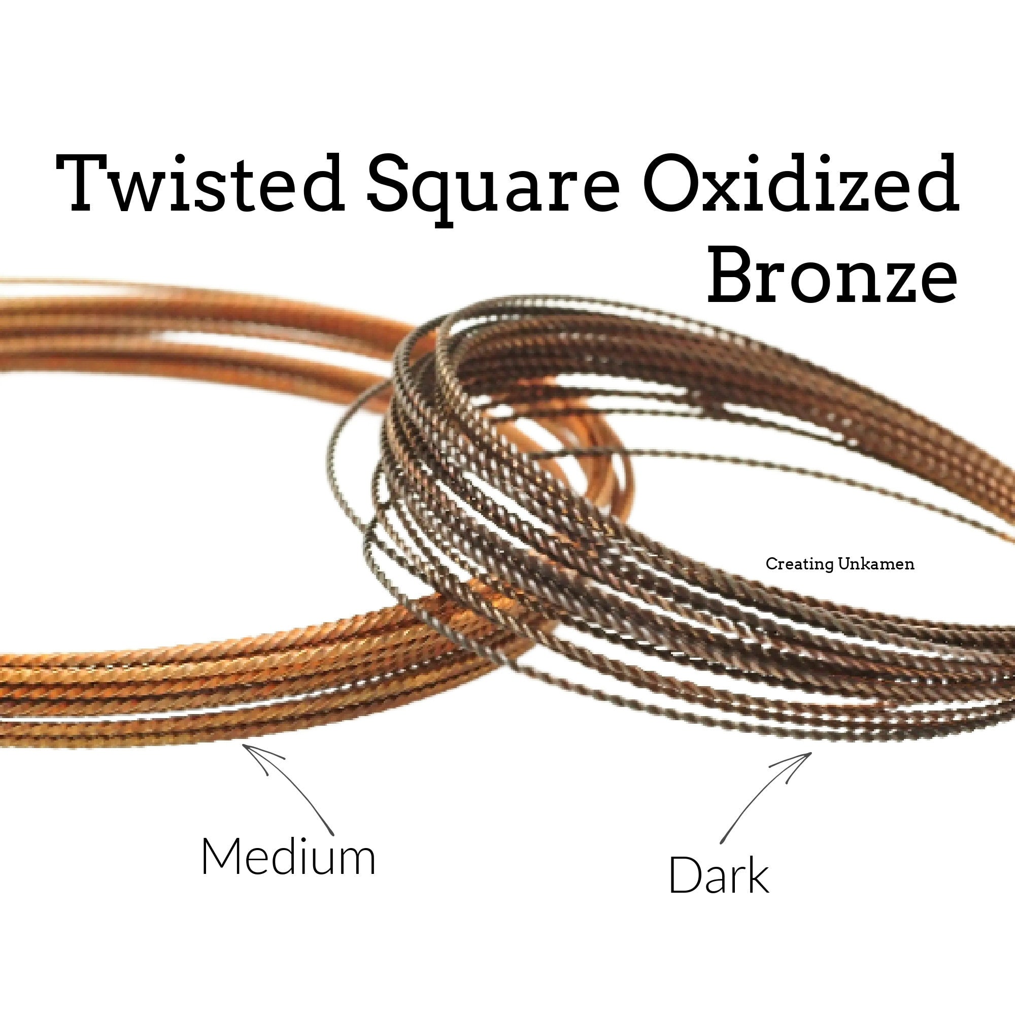 One of the most common requests we have gotten over the years is for Bronze Wire that will match antique bronze and vintage bronze findings. The findings have highlights and lowlights and colored wires are a single tone. Finally, here it is! This Oxidized Bronze Wire is the same great wire that we use to make our high quality jump rings and findings. We start with solid square bronze wire, coil and clean it and then oxidize it by hand. We offer 2 general levels of oxidizing; medium and dark. The MEDIUM oxidizing will have varying shades of brown with possible red and gold tones. The DARK oxidizing will have varying shades of brown, grey and black. The wire will continue to oxidize once exposed to the air and may also loose some of its dark tones as you work with it. You can choose to seal this. You can also use our Synthetic Steel Wool to give it highlights.