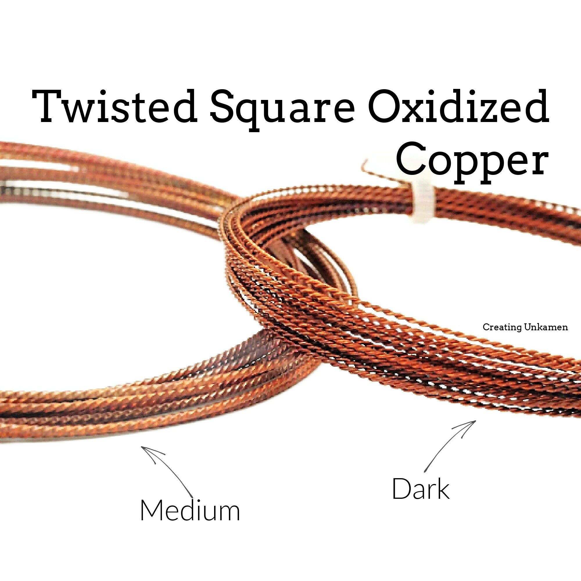 Antique Copper wire is always in demand. We start with solid copper wire, coil and clean it and then oxidize it by hand. We offer 2 general levels of oxidizing; medium and dark. The MEDIUM oxidizing will have varying shades of brown with possible red and gold tones. The DARK oxidizing will have varying shades of dark brown, grey and black. The wire will continue to oxidize once exposed to the air and may also loose some of its dark tones as you work with it. You can choose to seal this. You can also use our Synthetic Steel Wool to give it highlights.