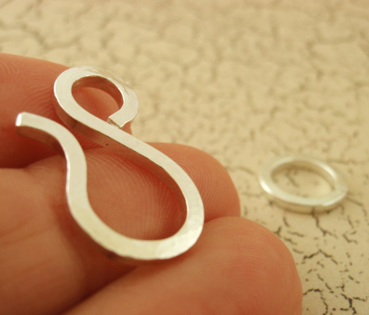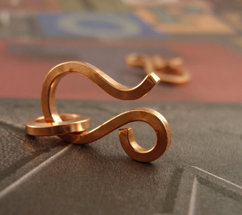 These Handmade Hand Forged Clasps are perfect for bracelets, necklaces and anklets! They were hand forged by our us from 16 gauge metals and due to their hand crafting, vary slightly, but are approximately 20mm X 14mm. They include matching square wire 16 gauge 8mm ID jump rings.
