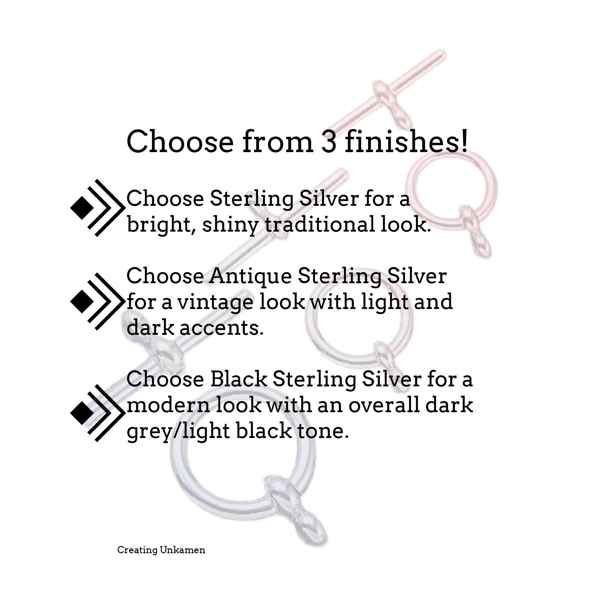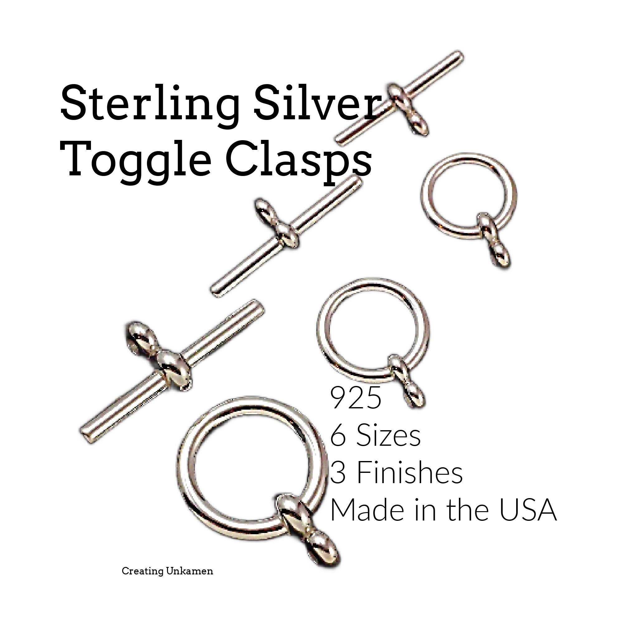 This Simple Sterling Silver Toggle Clasp is the perfect finish for a special necklace or bracelet! These toggle clasps are made from solid 925 sterling silver, in the USA, and feature flat ends and loops that are perpendicular to the bar. These clasps are available in shiny sterling silver, antique sterling silver and black sterling silver.