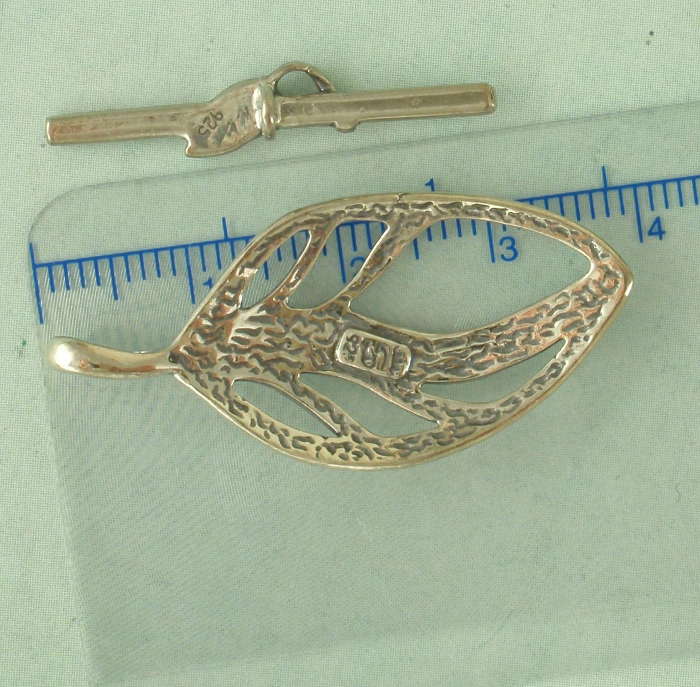 1 Sterling Silver Leaf Clasp - Large Unique Toggle 40mm X 18mm
