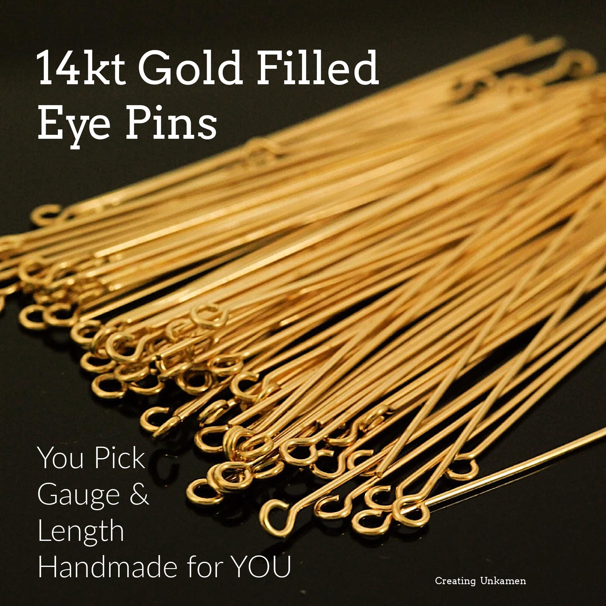 These 14kt Gold filled Metal Eye Pins are perfect for jewelry artisans who are looking for something better than what is available commercially. These eye pins are made from your choice of gauge and in your choice of length! We use 14kt gold filled wire that are milled in the USA and us nickel and lead free. This listing is for 10 eye pins.