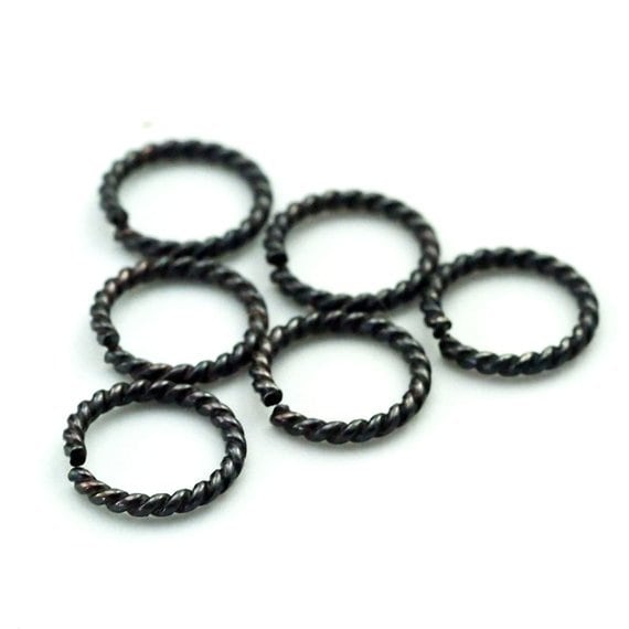 Jump Rings 10 Twisted Round Sterling Silver 11 Sizes in 14, 16, 18 and 21 gauge - Shiny, Antique or Black Finish