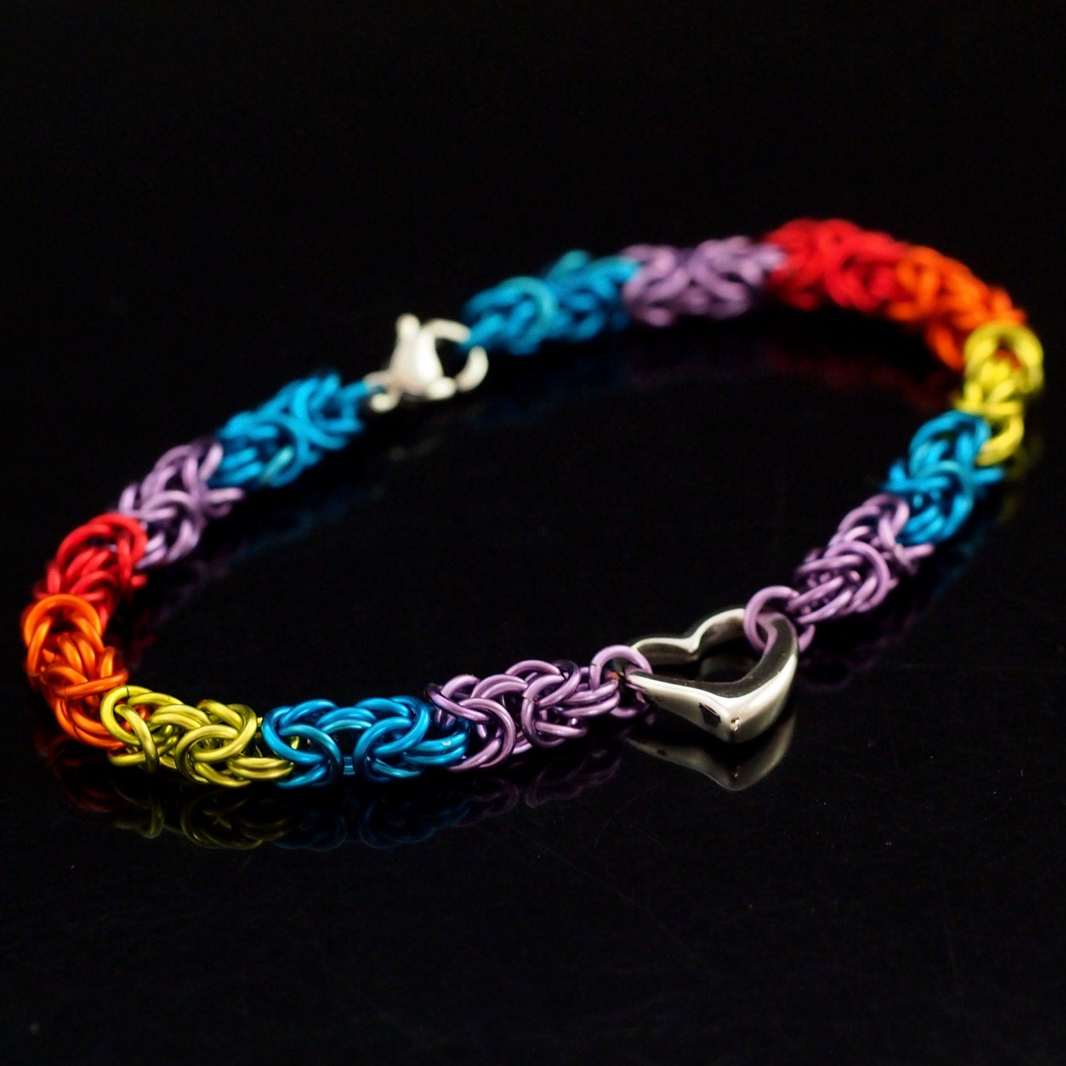 Materials: saw cut colored copper jump rings, does not contain nickel or lead.