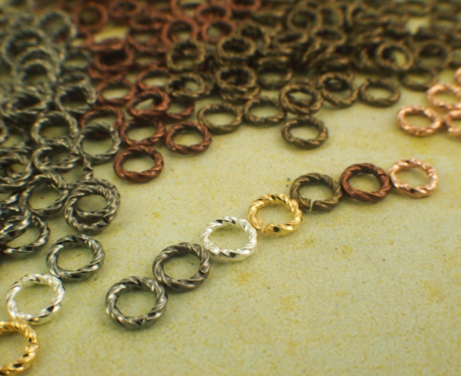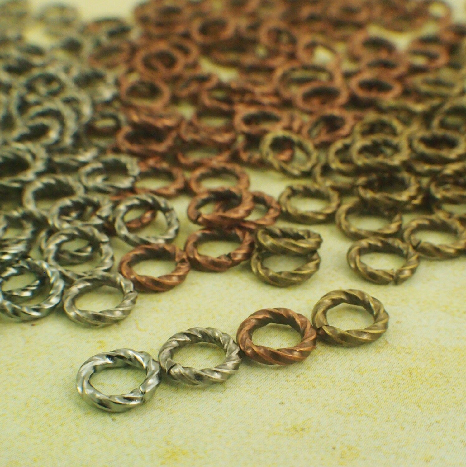 Jump Rings 100 Fancy 16 gauge 6mm OD Silver Plate, Gold Plate, Antique Silver, Antique Gold, Antique Copper, Gunmetal Best Commercially Made