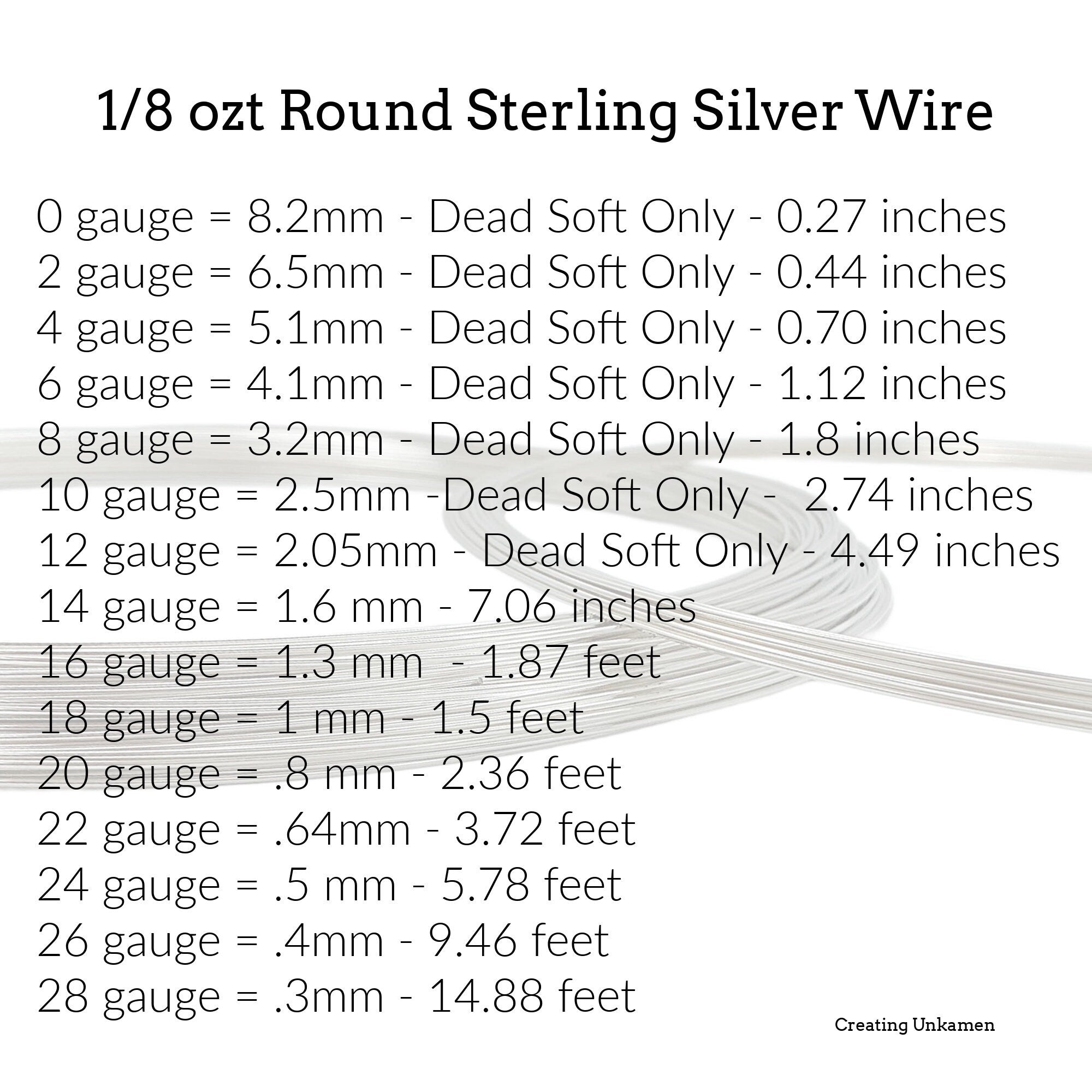 This listing is for your choice of half hard or dead soft temper Round STERLING SILVER wire. This is the same wire that we use to make our customers jump rings and findings such as ear wires, bails and clasps! Each listing is for 1/8 ozt and we will run multiple lengths into 1 continuous length.