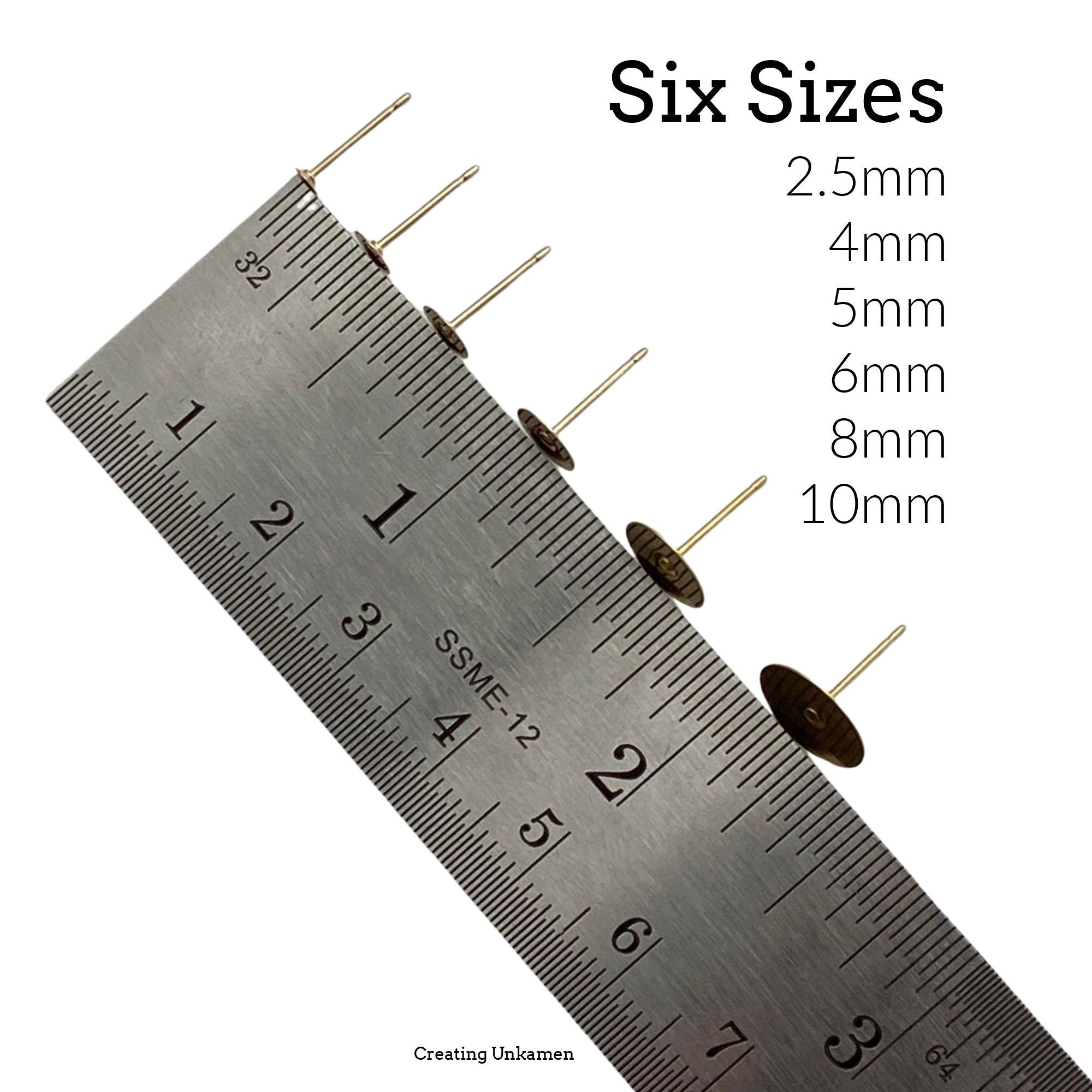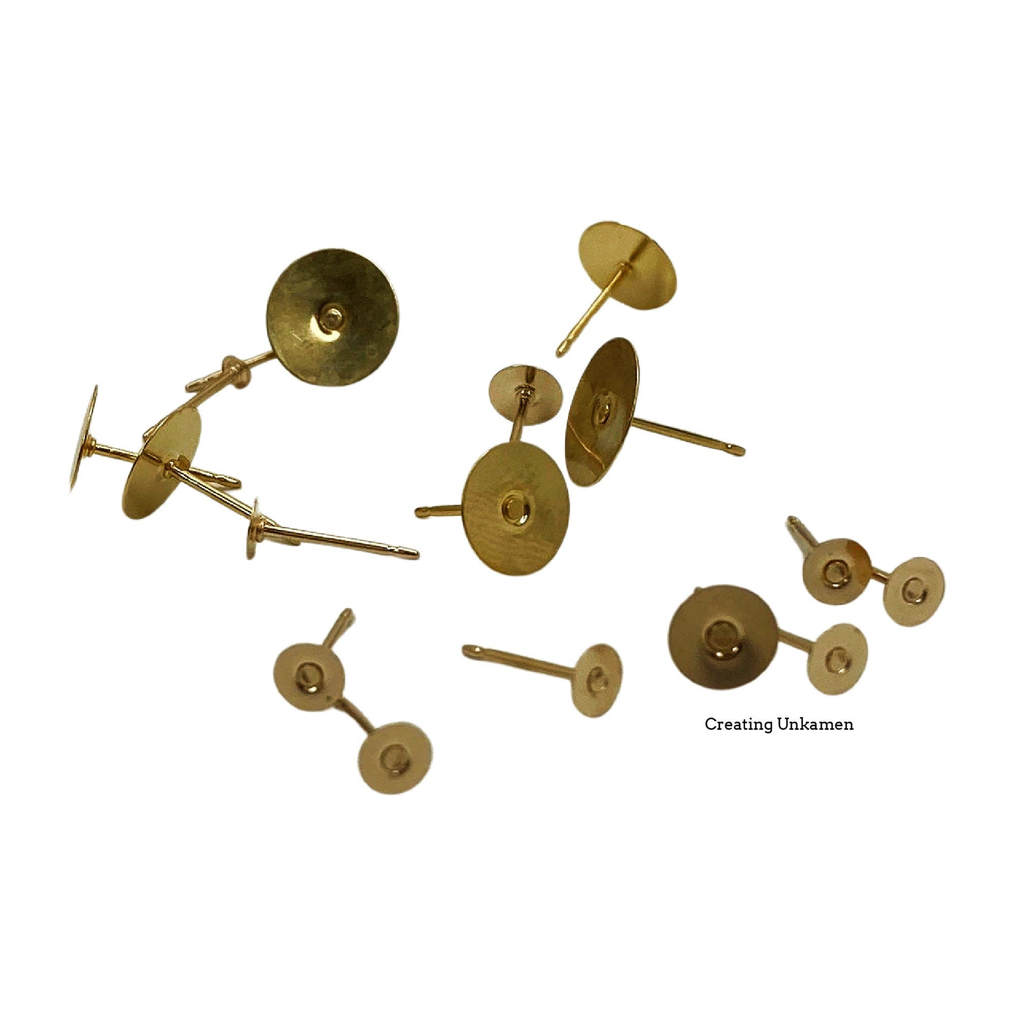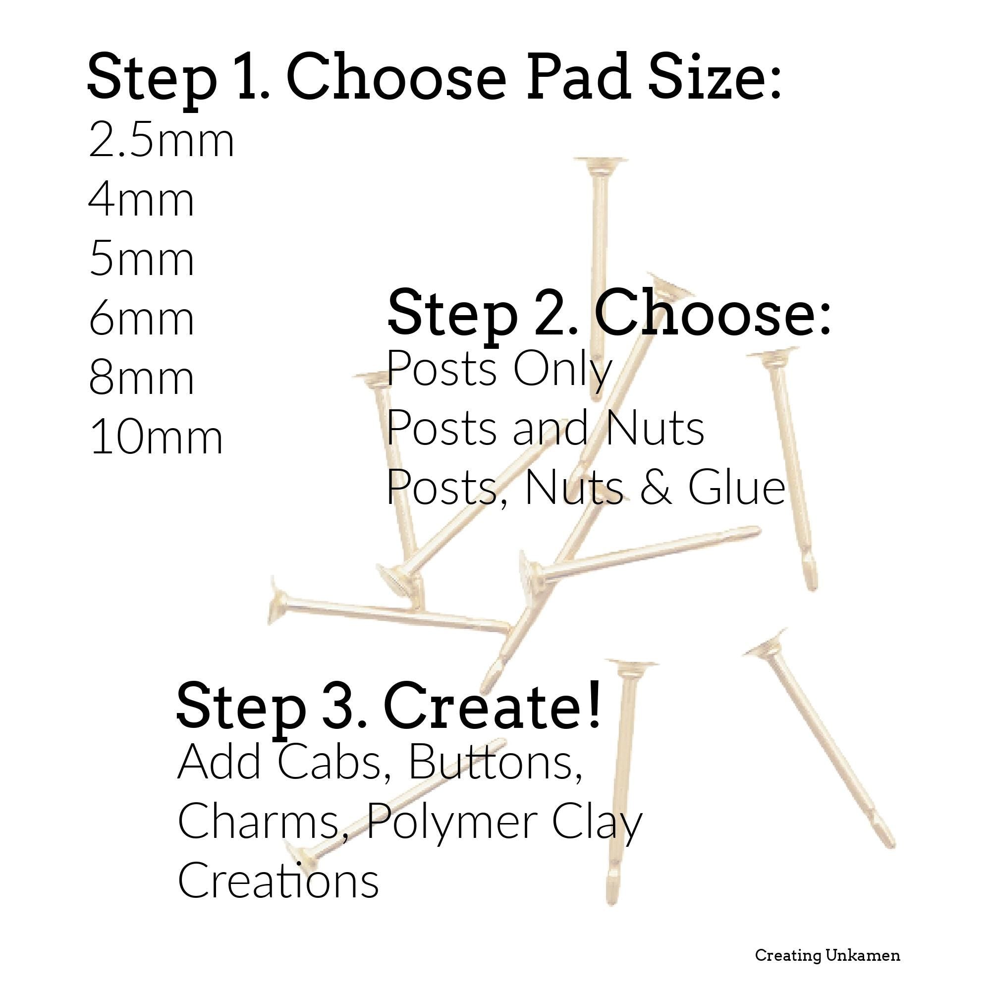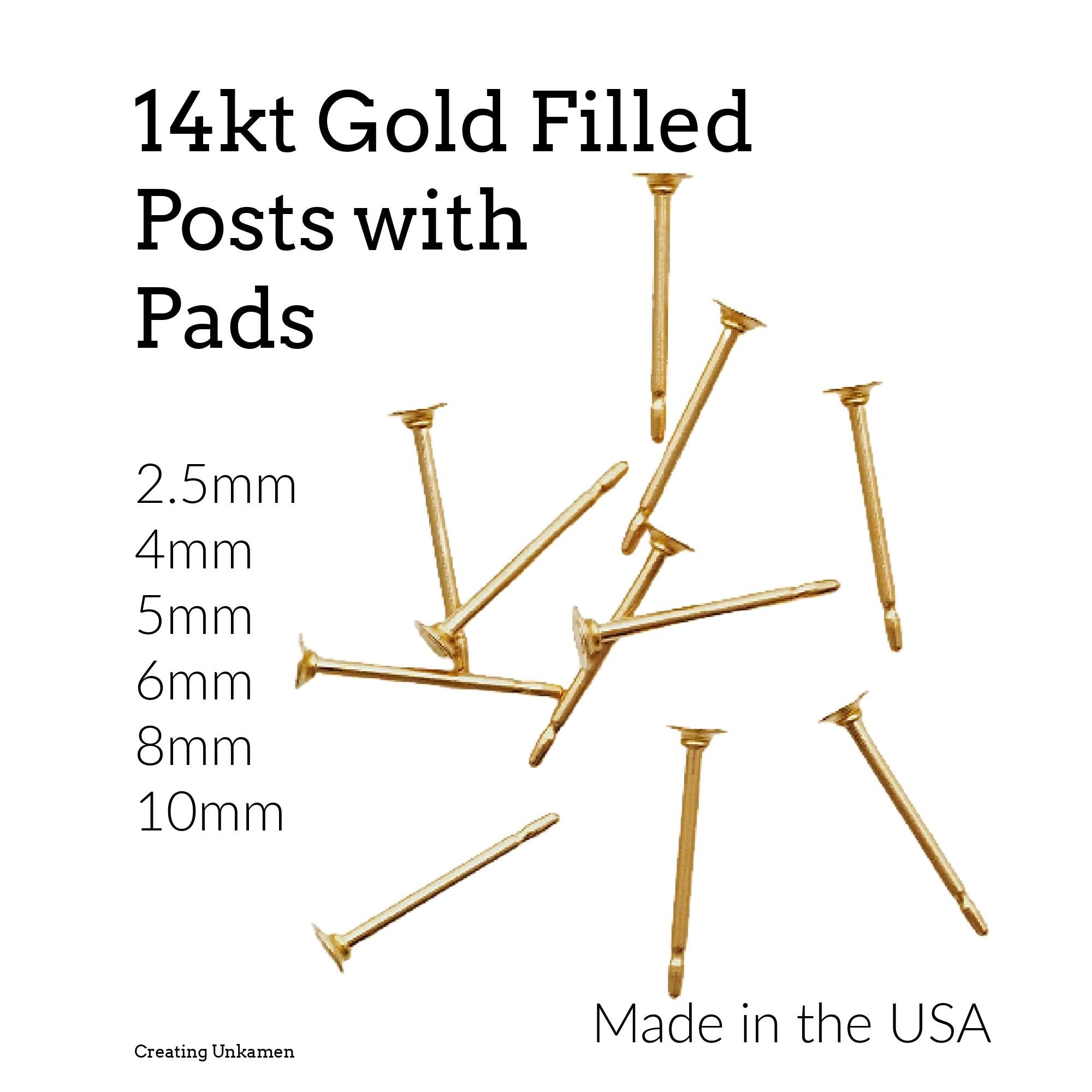 14kt Gold Filled Post Earrings KIT - Makes 4 Pairs - 2.5mm, 4mm, 5mm, 6mm, 8mm, 10mm Pad - Made in the USA - Includes Posts, Nuts and Glue