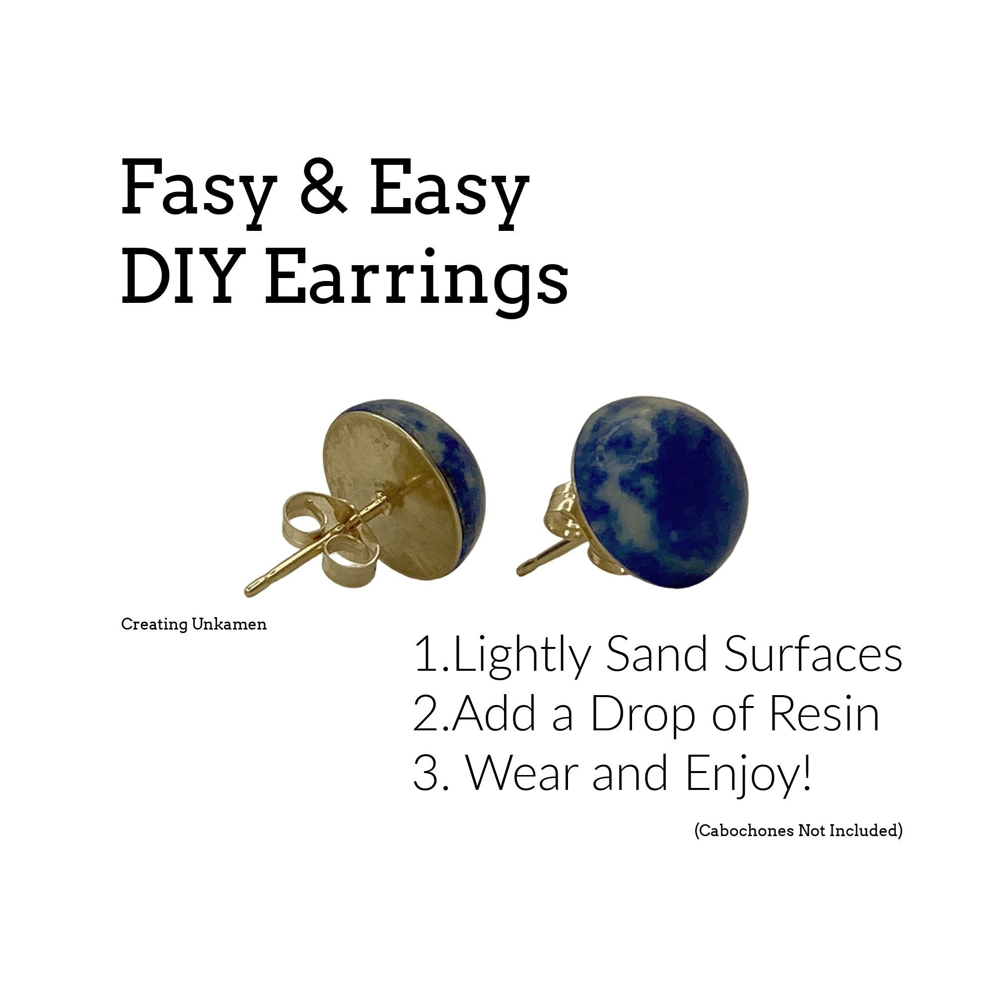 Materials: 14kt gold filled posts with pad, 2 part resin, 14kt gold filled ear nuts.