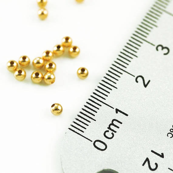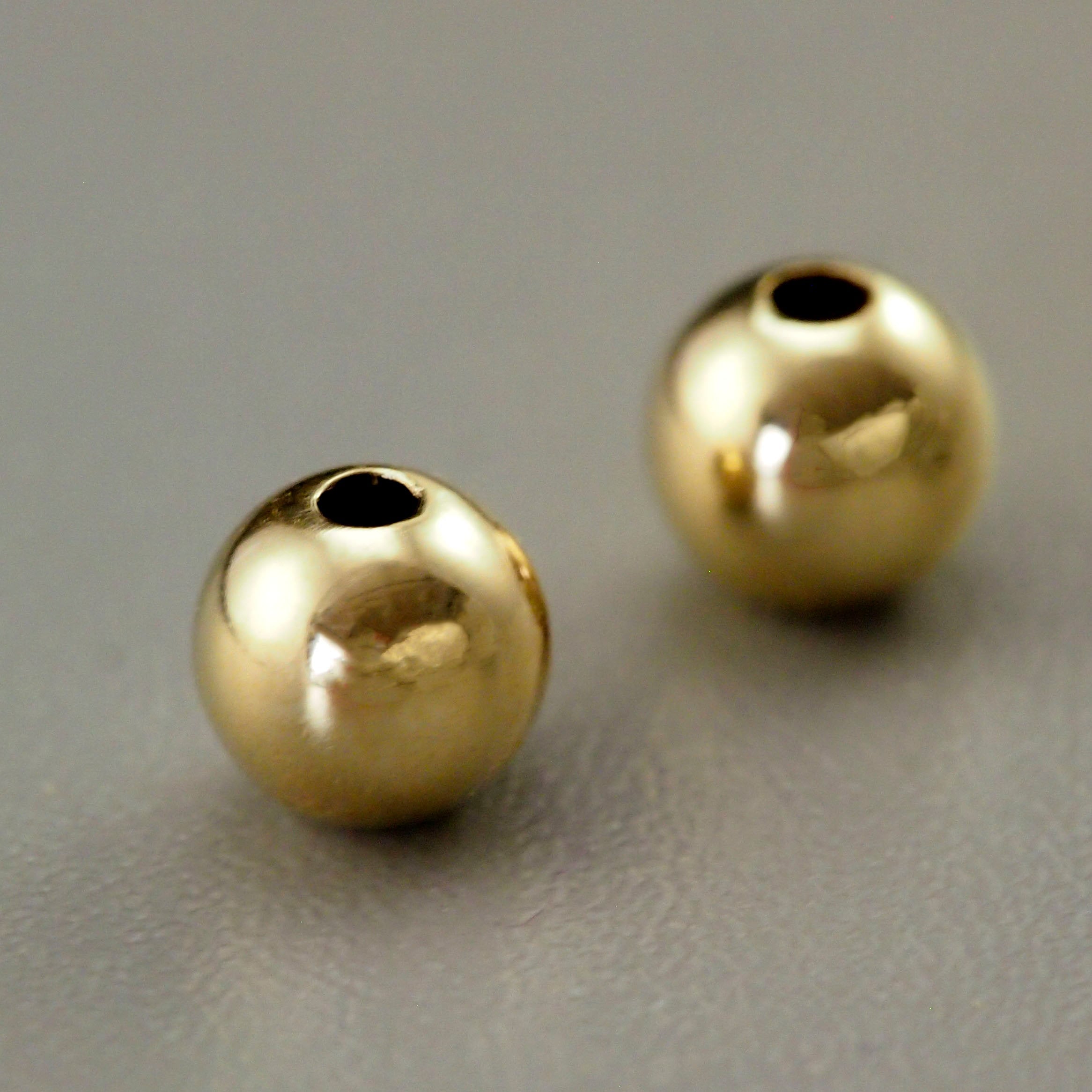 2 - 14kt Solid Gold Smooth Round Beads - 2mm, 2.5mm, 3mm, 4mm, 5mm, 6mm, 8mm - Thin or Thick Wall
