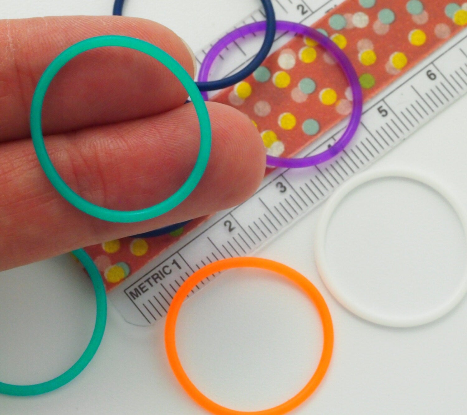 These Silicone Jump Rings are flexible and versatile! They measure 25mm OD - so these are a full inch in diameter. These jump rings made from soft silicone are perfect for customers with latex allergies, like several family members! These do not irritate their skin at all. They measure 1.45mm thick or 15 gauge, and are 25mm OD - 22mm ID. Each listing is for 25 silicone jump rings.