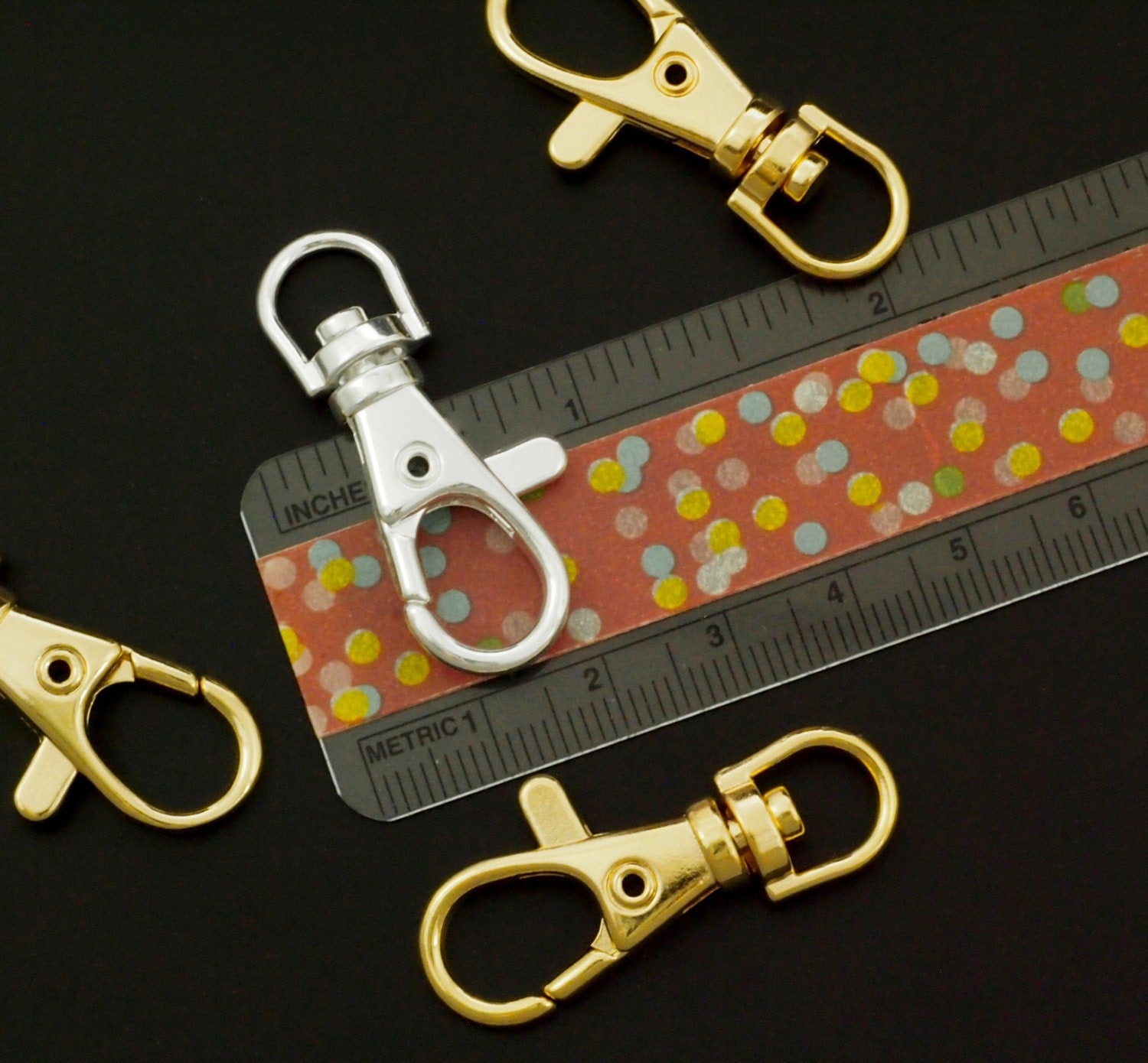 These Silver Plated or Gold Plated Swivel Lobster Clasps are perfect for jewelry and crafts that require an extra large attachment! These clasps are a very good quality commercially made product that we have worked with and sold for over 10 years. These clasps have a particularly sleek unique look AND they swivel! They hold tightly closed, are self closing, do not contain lead or nickel and they measure 30mm X 13mm. Each listing is for 4 clasps.