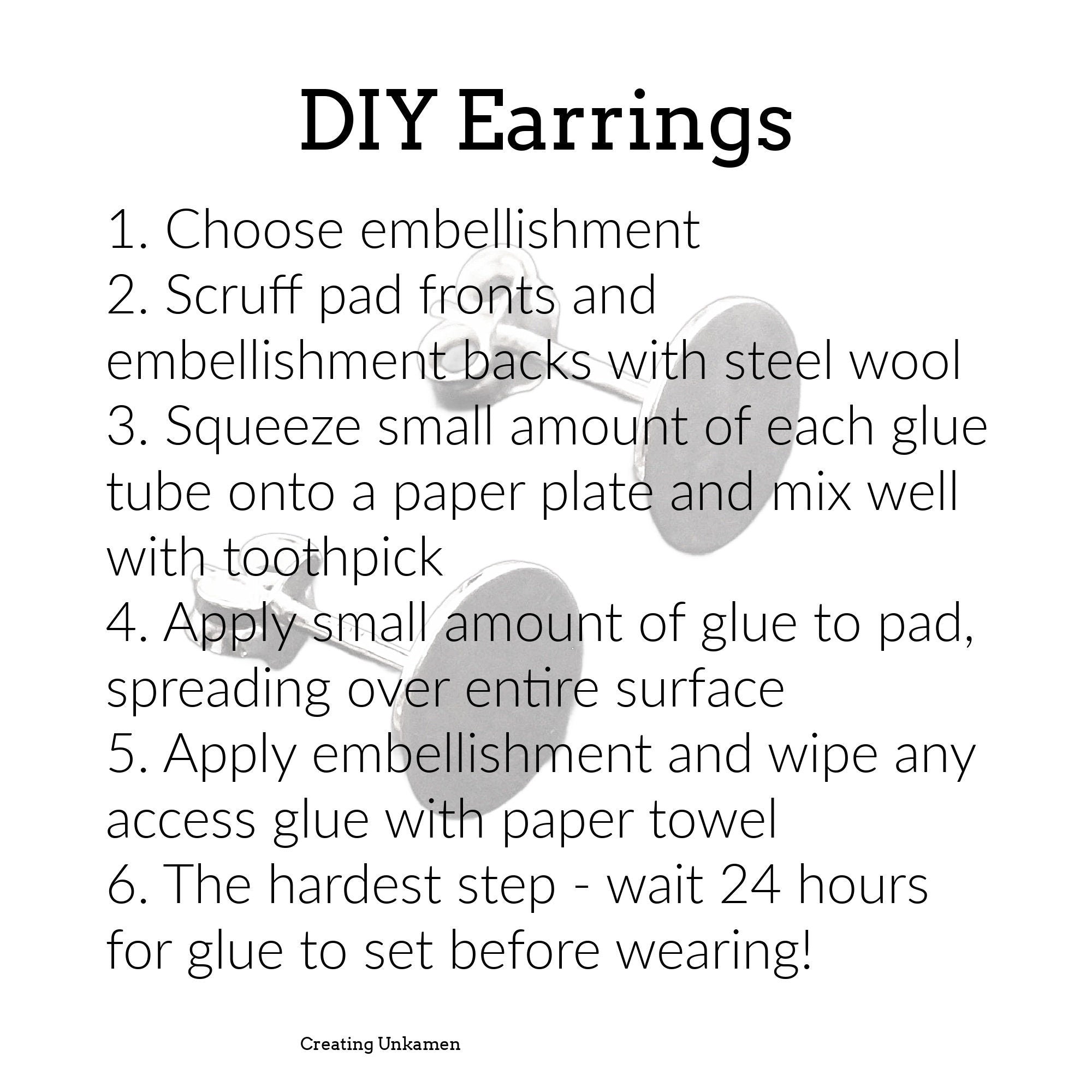 This Deluxe Sterling Silver Earrings Kit contains everything you need to make your cabochons, vintage buttons, polymer clay creations, or anything you can think of, into cute post earrings! But, these pads are smooth and finished and could also be used with stamping or engraving - or even as is! Choose the complete Kit or A La Cart!