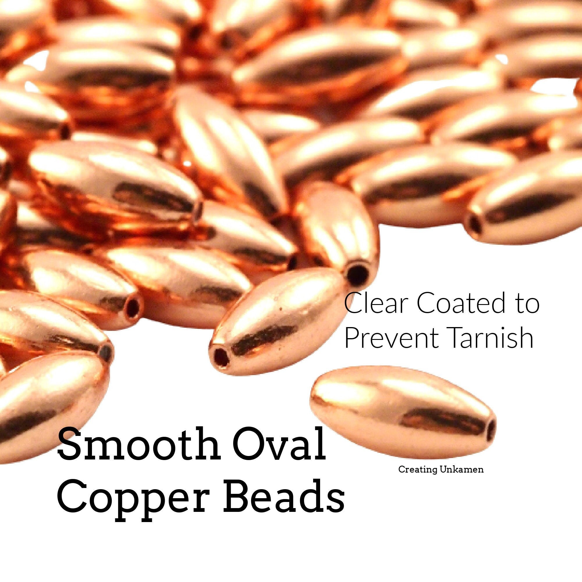 50 Smooth Oval Copper Beads - Clear Coated to Prevent Tarnish - 100% Guarantee in 5mm, 7mm, 9mm