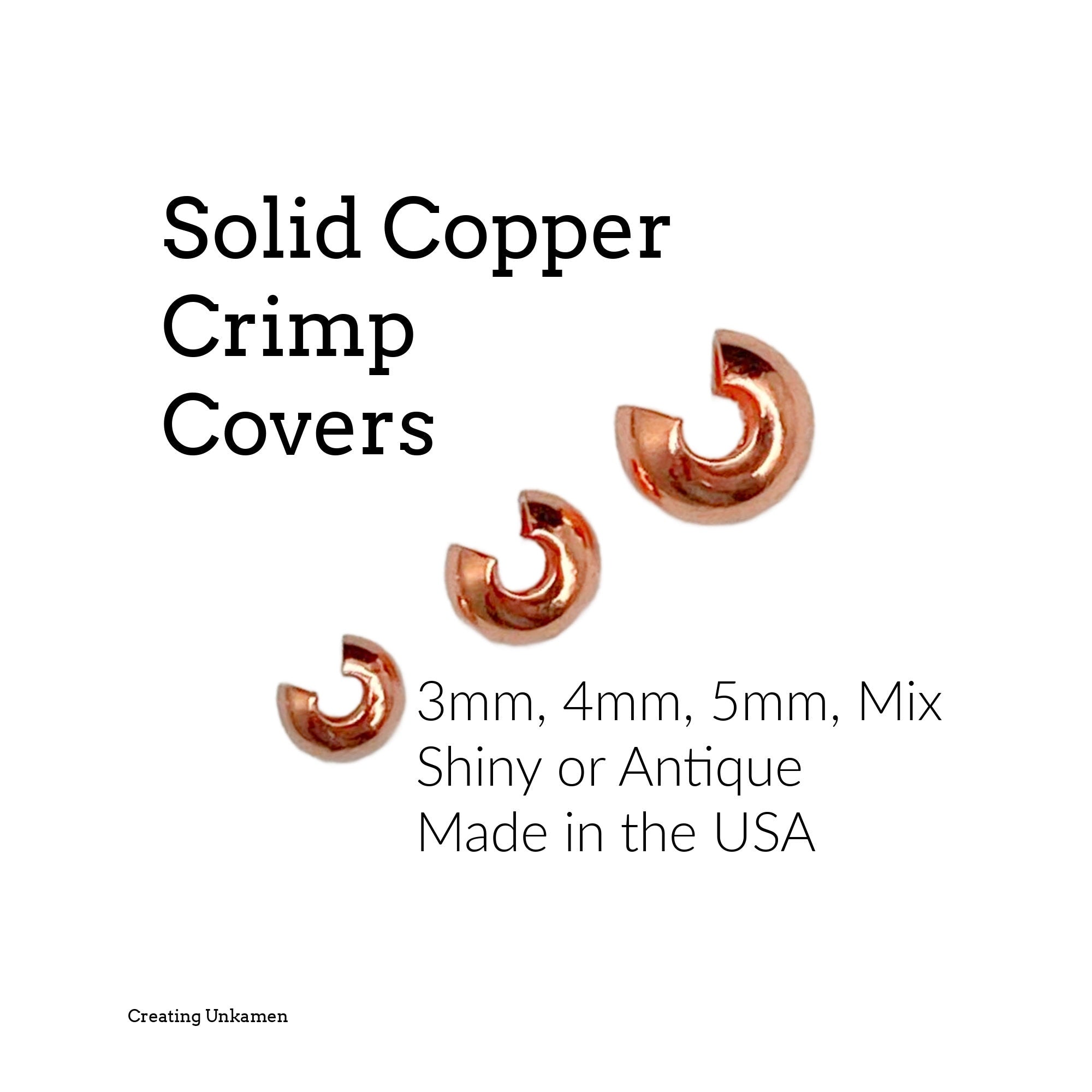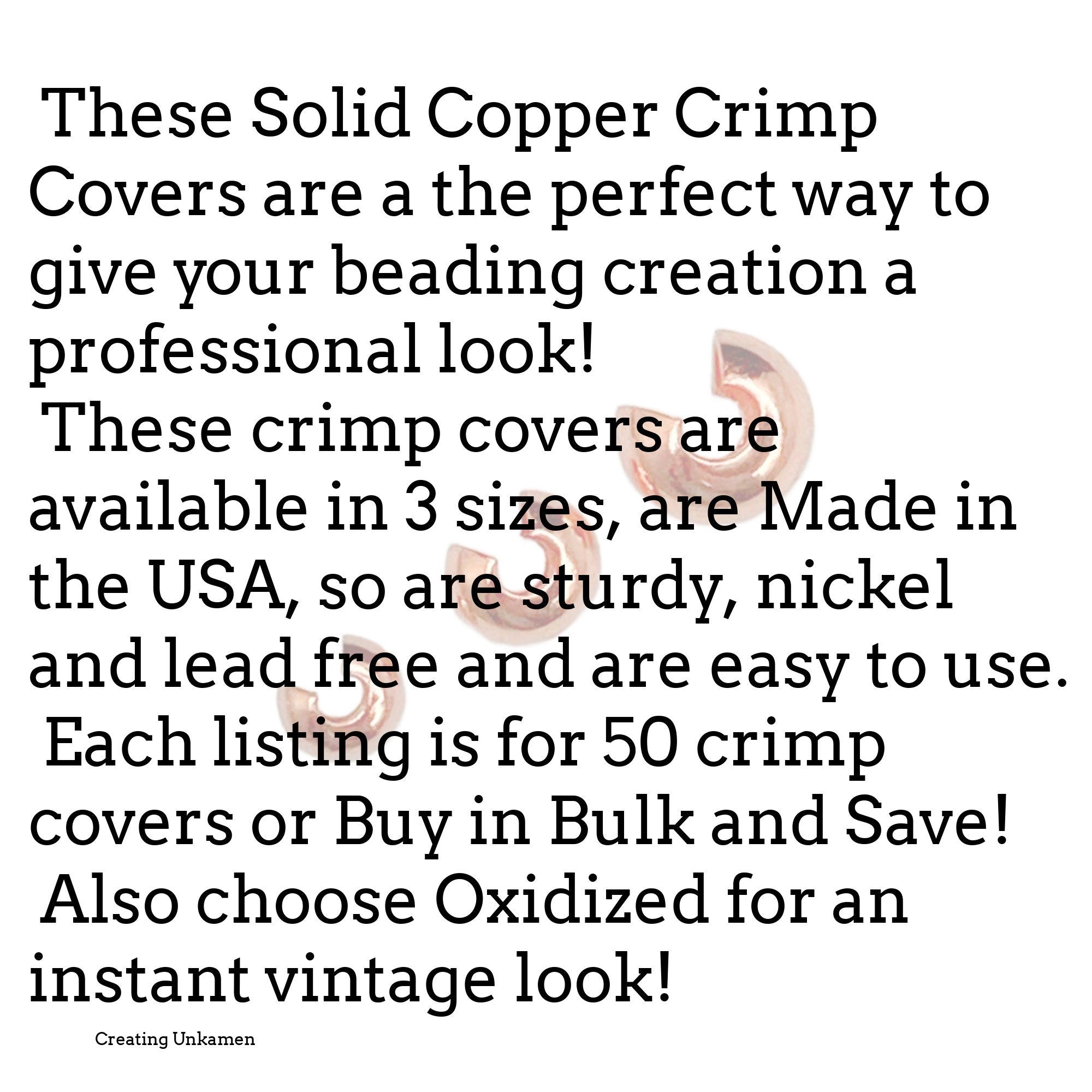 These Solid Copper Crimp Covers are a the perfect way to give your beading creation a professional look! These crimp covers are available in 3 sizes, are Made in the USA, so are sturdy, nickel and lead free and are easy to use. Each listing is for 50 crimp covers or Buy in Bulk and Save! Also choose Oxidized for an instant vintage look!