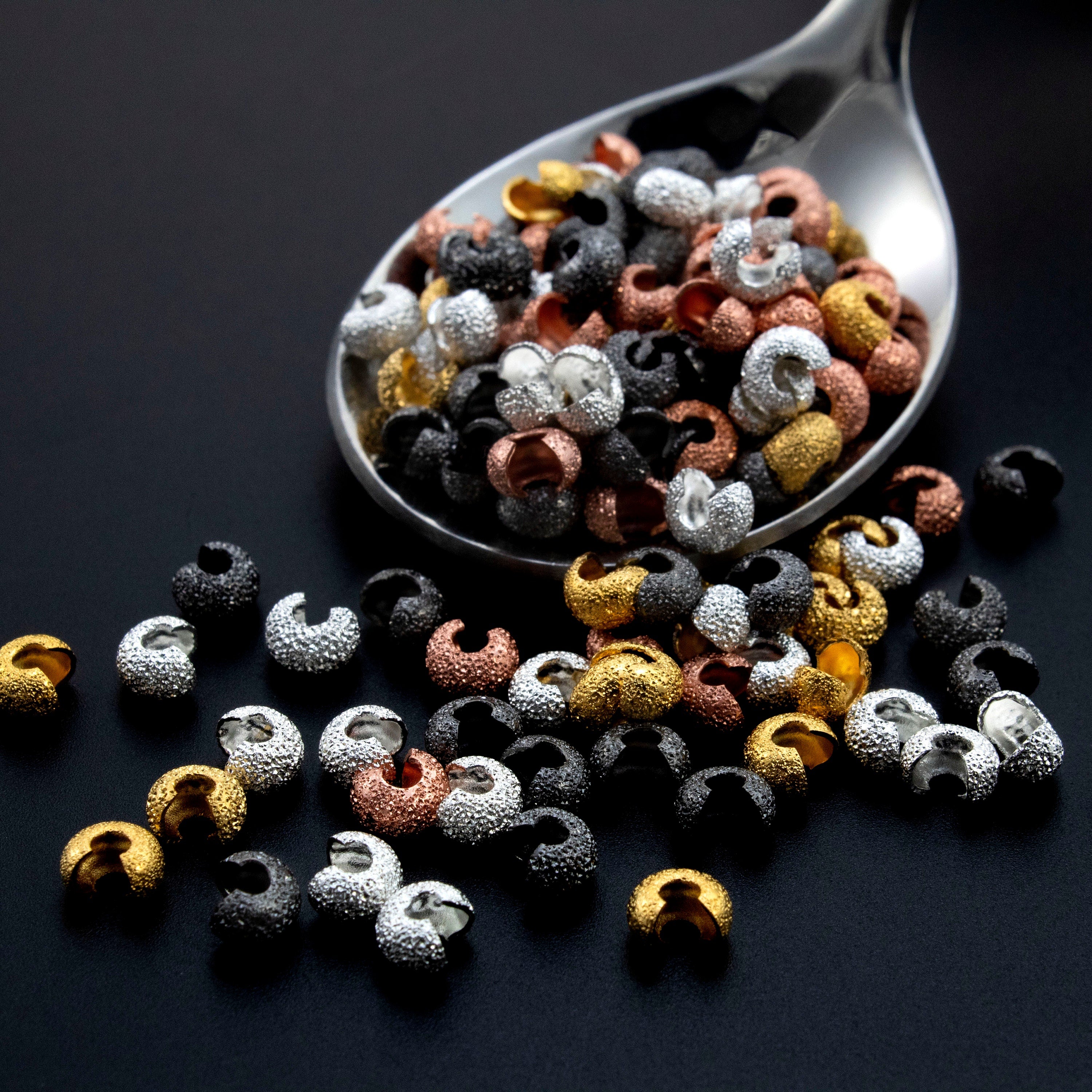 50 Stardust Crimp Covers 4mm in Silver Plated, Gold Plated, Gunmetal, or Copper Plated