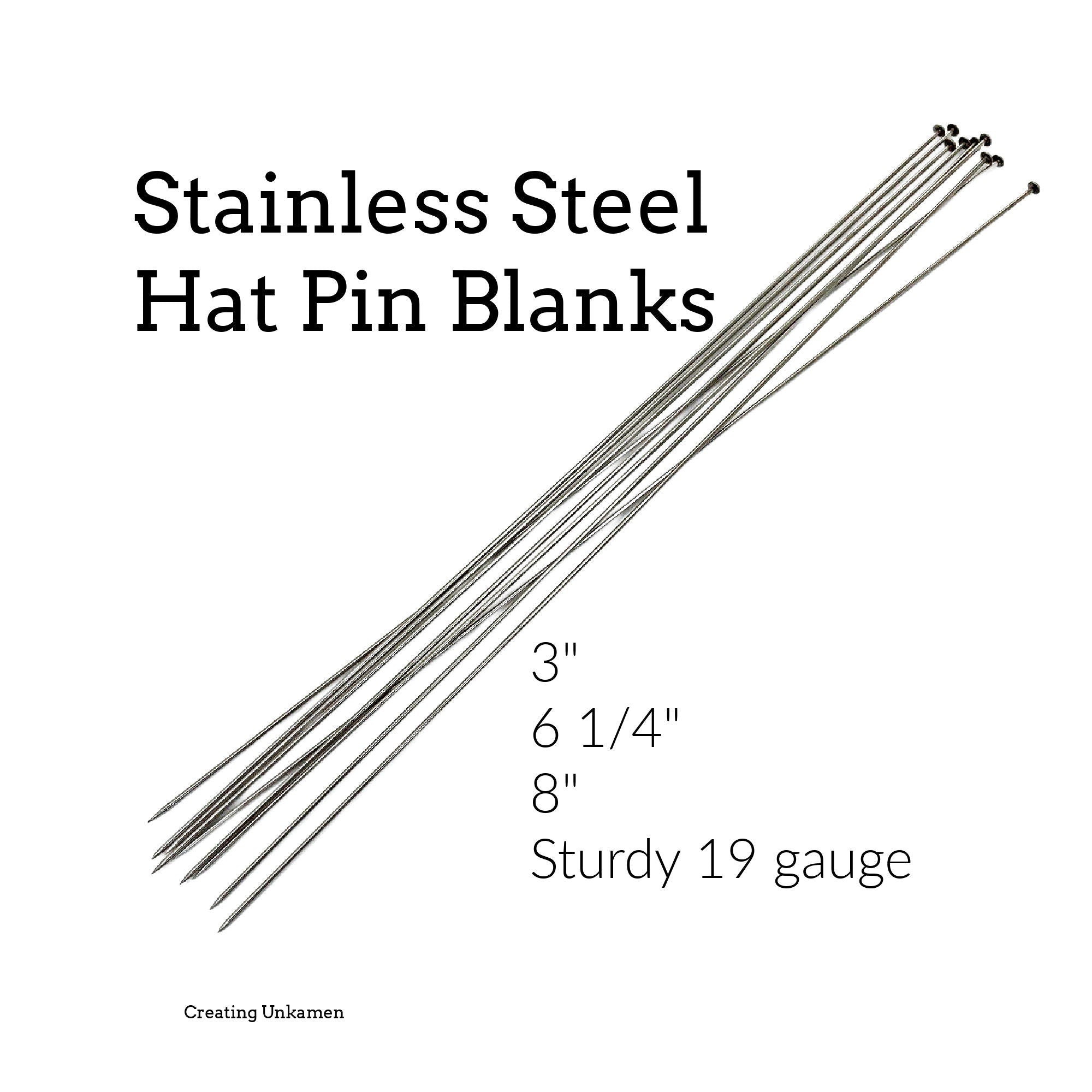 6 - 19 gauge Stainless Steel Hat Pin Blanks