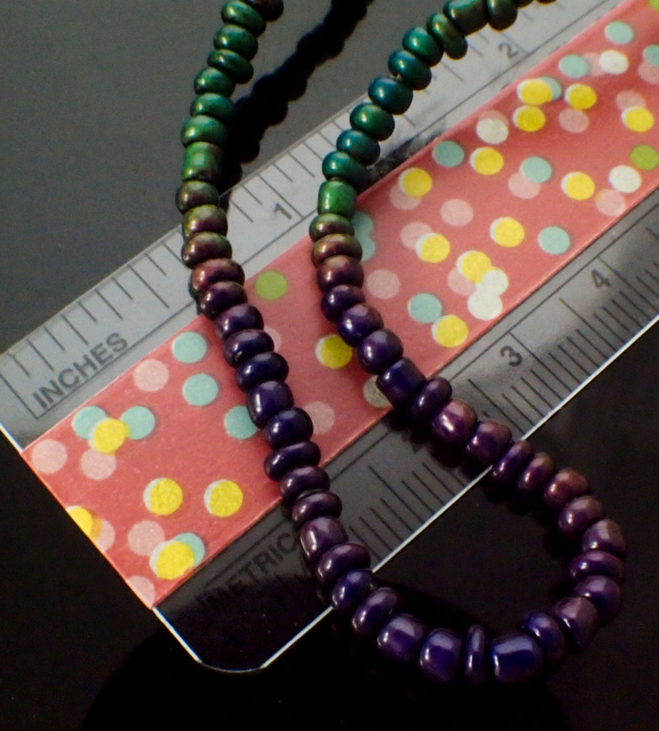 Cons: While these are tiny 3mm beads, the quality control of those I received leaves a lot to be desired. Most have unpainted edging and the width of the bands is extremely varied so they do not have a uniform appearance (this is subtly shown in the seller's photo). I also have a few that are somehow fused together.
