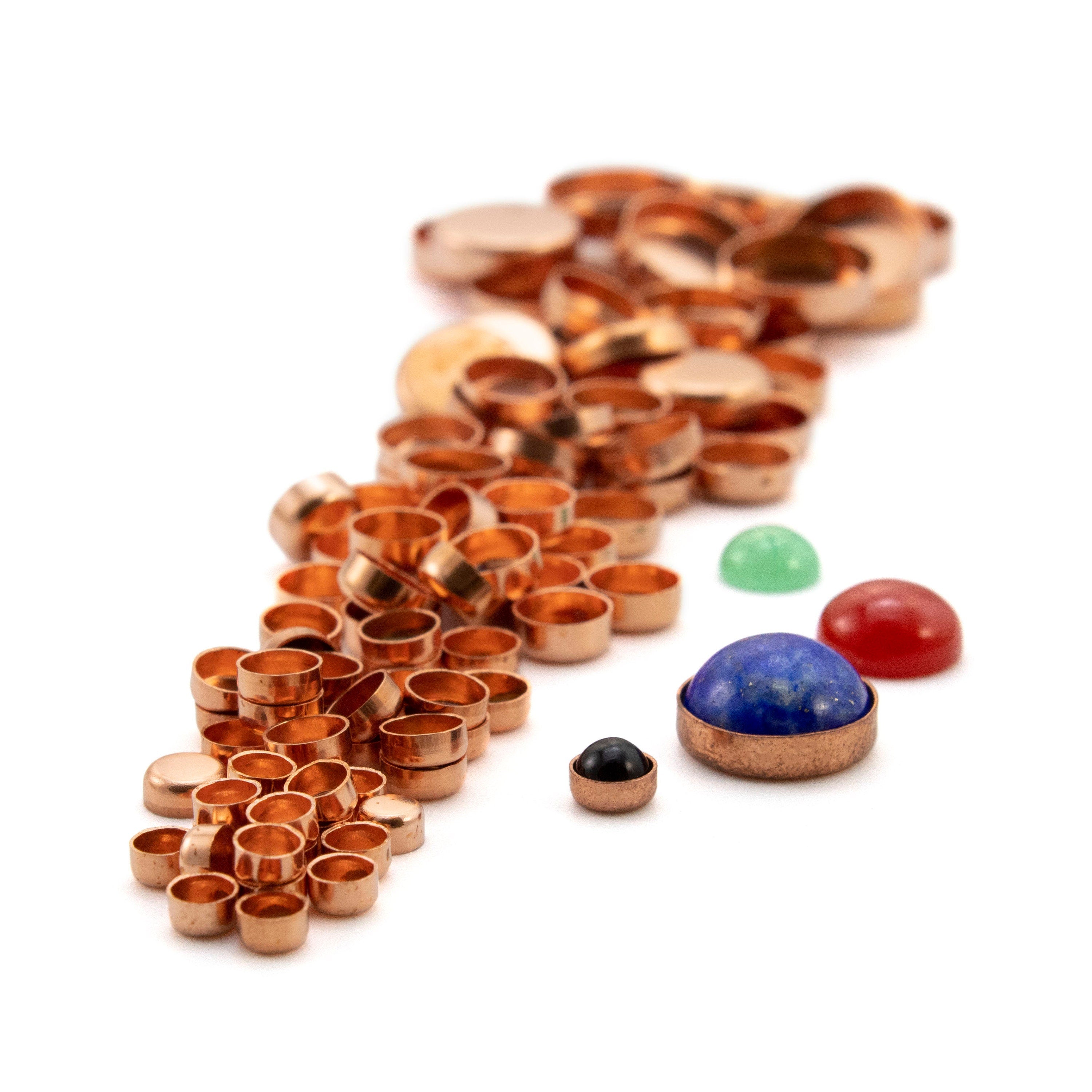 These Plain and Serrated Copper Bezel Cups are a great choice for jewelry designs made with copper or other base metals. One bezel cup can hold one round cabochon, flat-back stone, or crystal, or even fill it with resin! These bezel cups will give your creation a clean-cut, professional looking results every time and they are made in the USA! Give your copper creation some unique focal points with these copper findings!