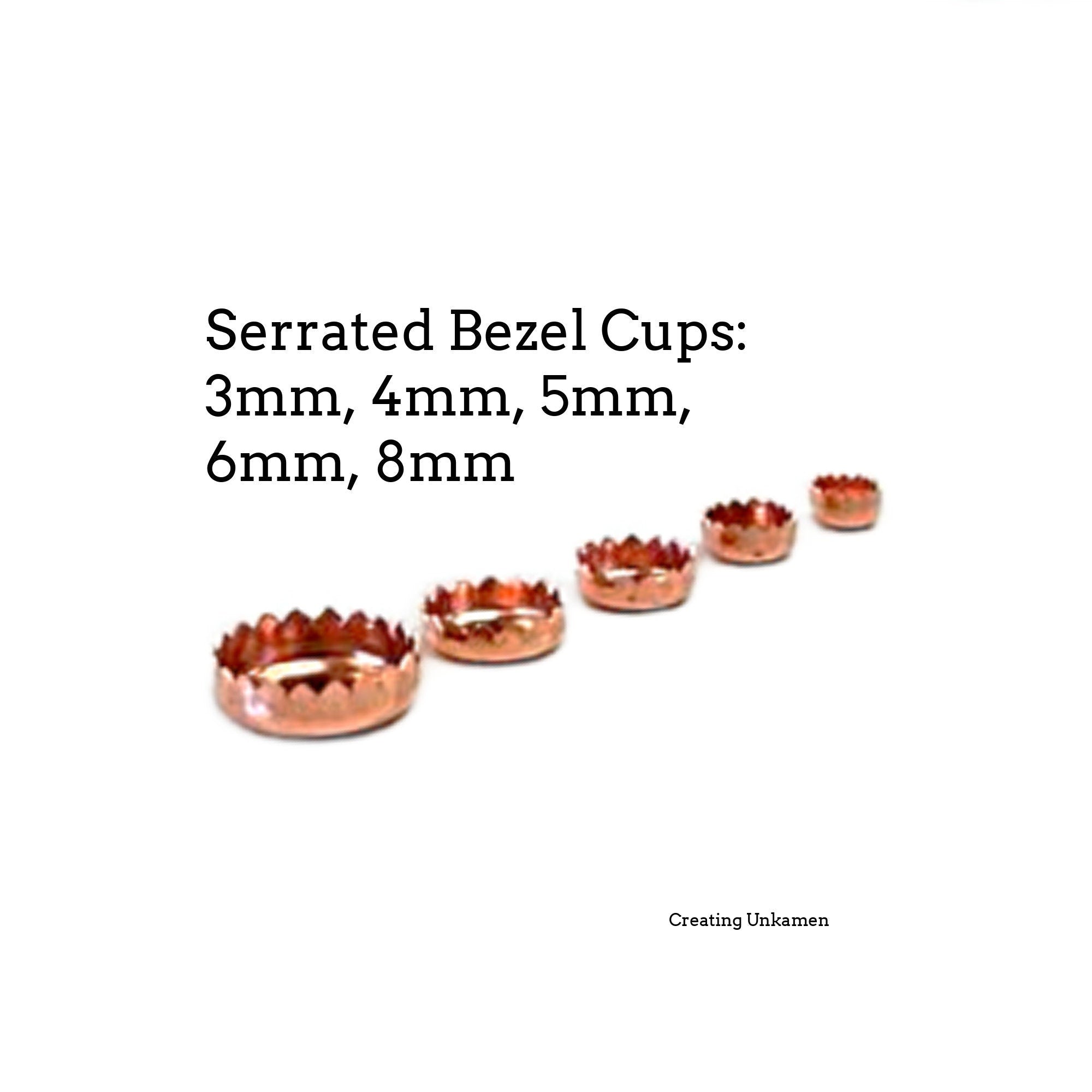 6 Raw Copper Plain and Serrated Round Bezel Cups - 3mm, 4mm, 5mm, 6mm, 8mm, and 10mm