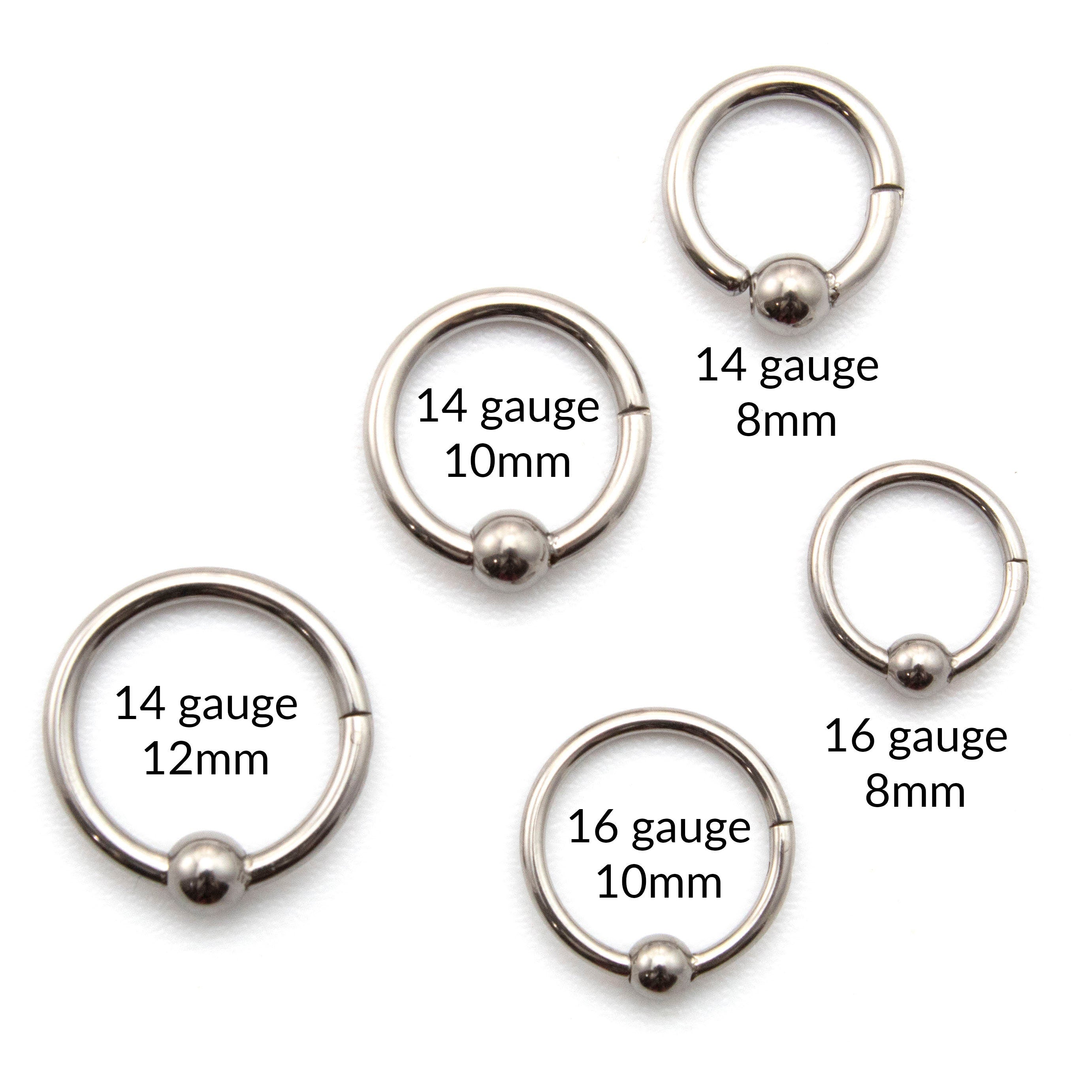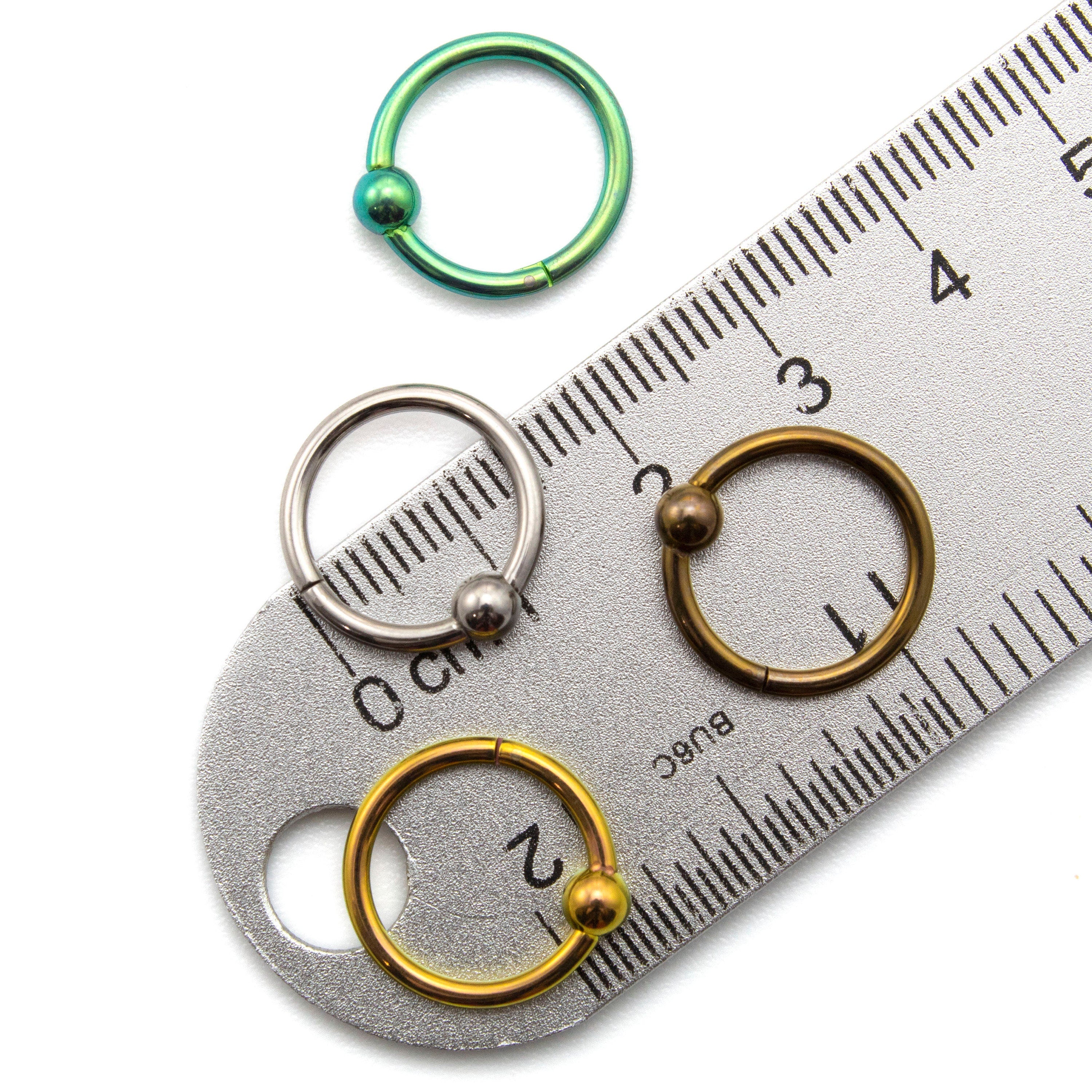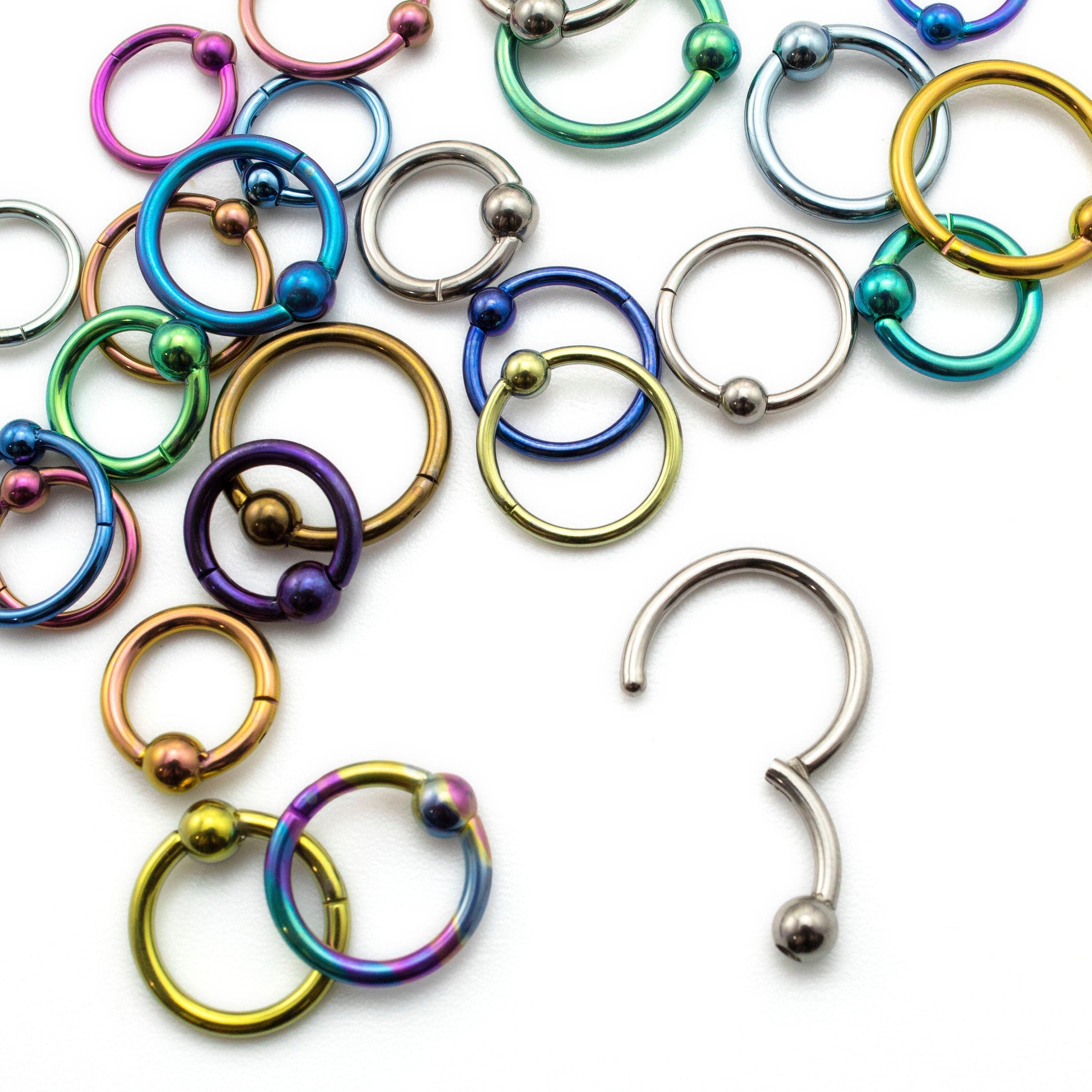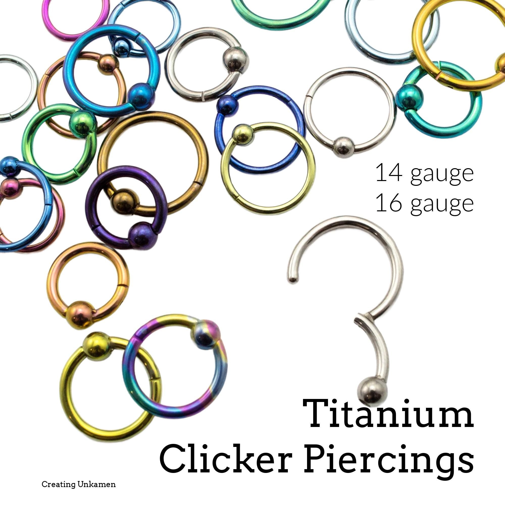 These Ball Clicker Segment Titanium Hoops are smooth and endless circles for your piercings! Each listing is for a single (1) hoop but Buy a Pair (2) and save! These hoops are created from hypo allergenic surgical grade titanium and are hand anodized/colored by us! The hinged feature makes them MUCH easier to insert and close than loose segment styles. These hoops are measured by their Inside Diameter (ID).